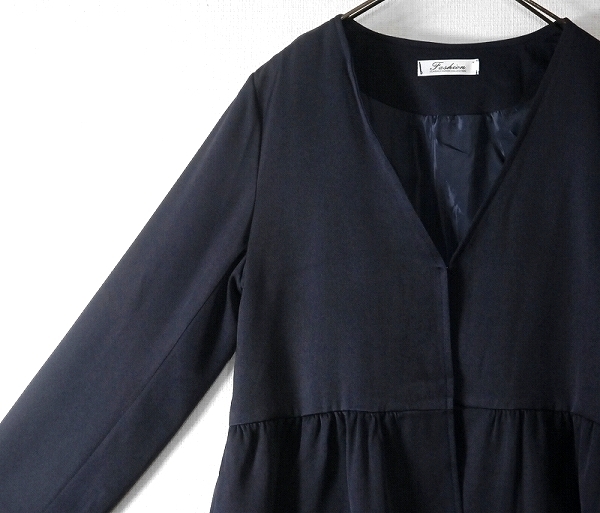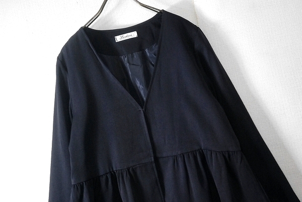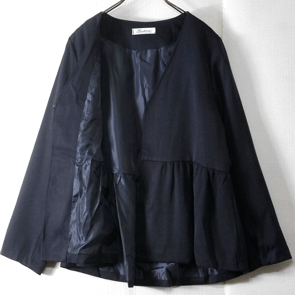 【未使用・アウトレット】切替ギャザーVネックジャケット/ネイビー/Sサイズ | ||||