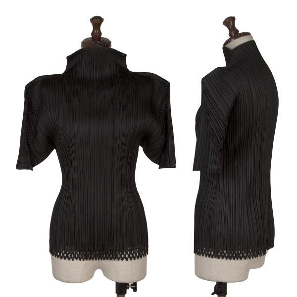 | プリーツプリーズPLEATS PLEASE 裾カットワークハイネックトップス 黒3 |