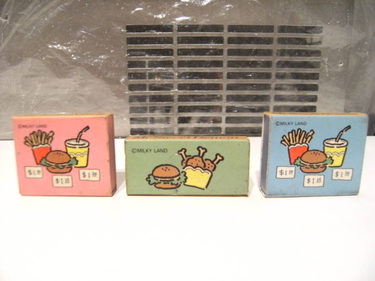 廃番★昭和レトロ★日本製 当時物 ファンシー系 MILKY LAND Mr.Sweet Demon シェイク ポテト ハンバーガー 悪魔 デモン 消しゴム 3個★死神