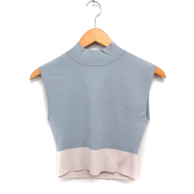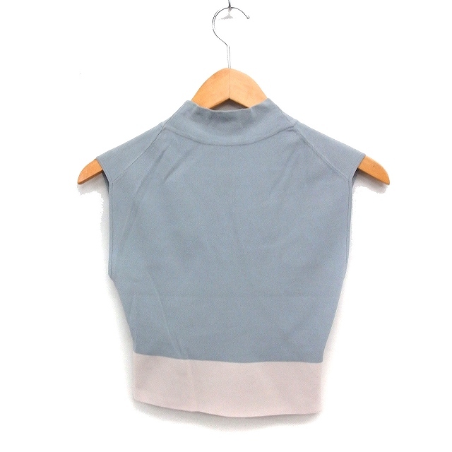 ヘレイアム HEREIAM バイカラー ニット カットソー ハイネック クロップド丈 3 サックスブルー /FT6 レディース