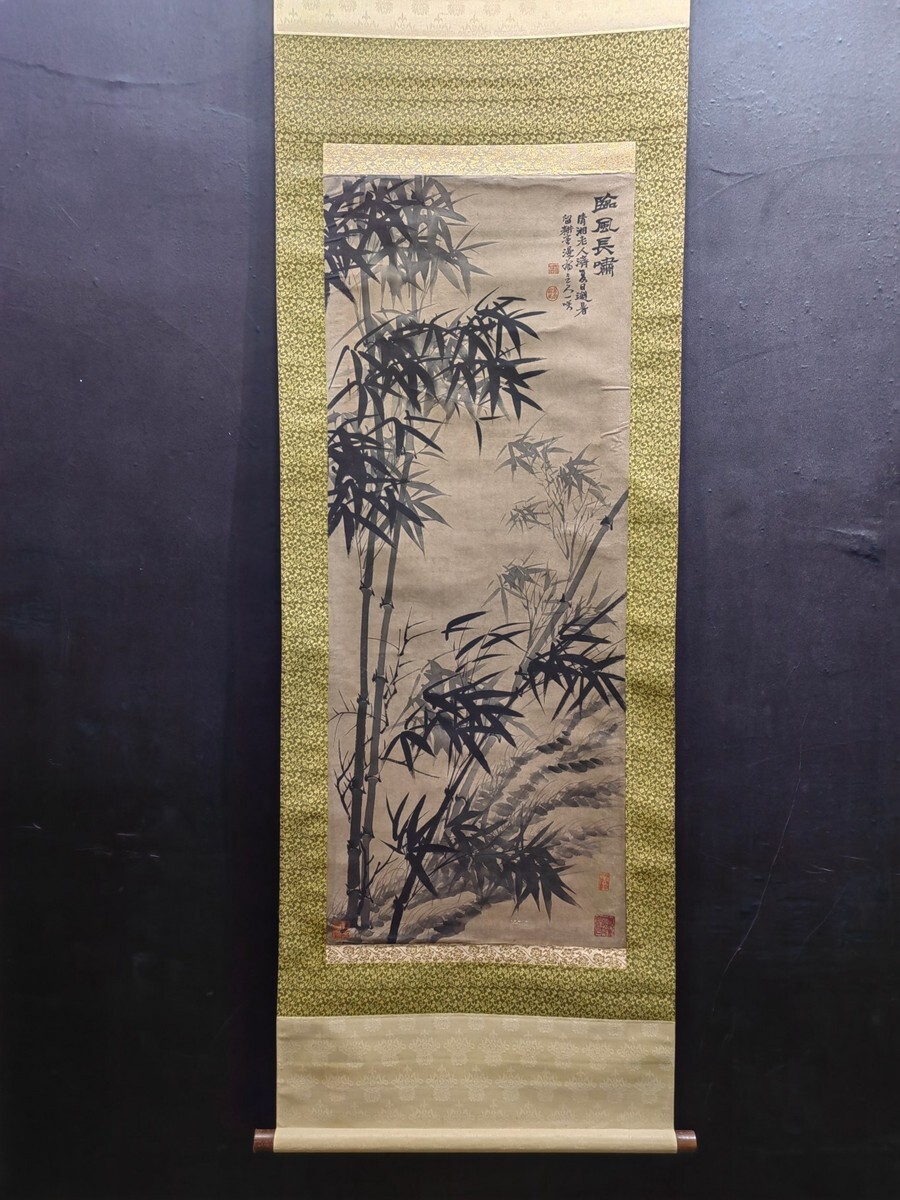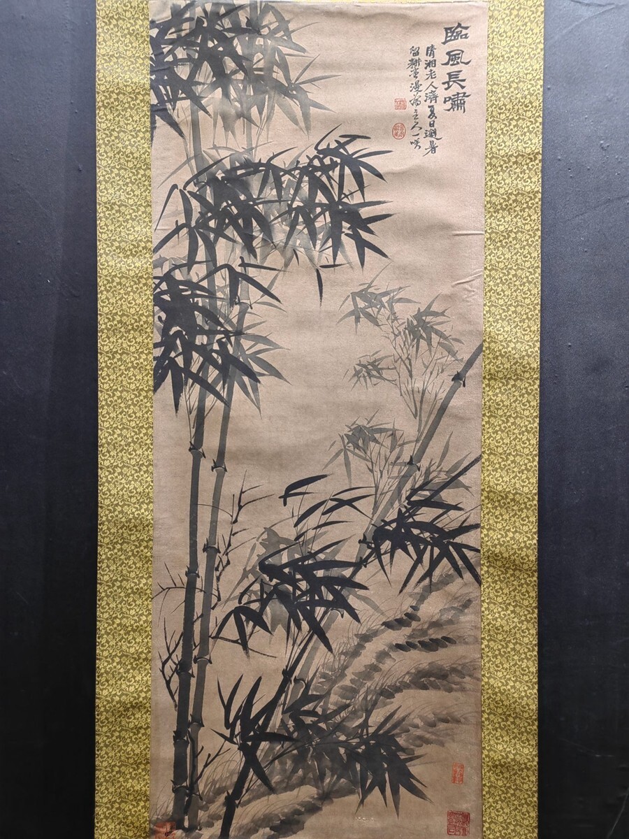 【瓏】「石濤作 臨風長嘯図」清代画家 肉筆紙本 掛け軸 書画立軸 巻き物 中国書画 古美術 蔵出