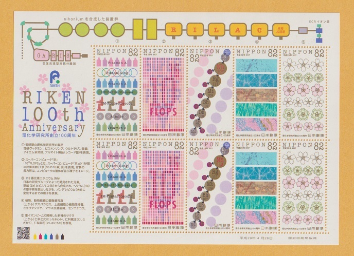 ●【記念切手】理化学研究所創設100周年《82円》 切手シート 2017年  未使用