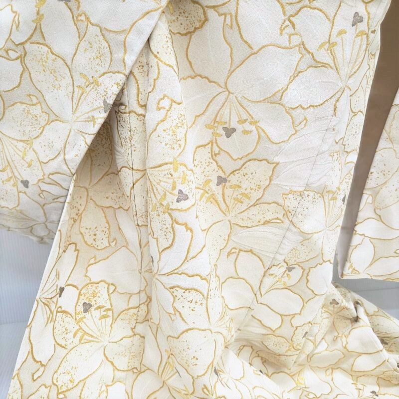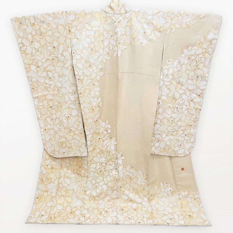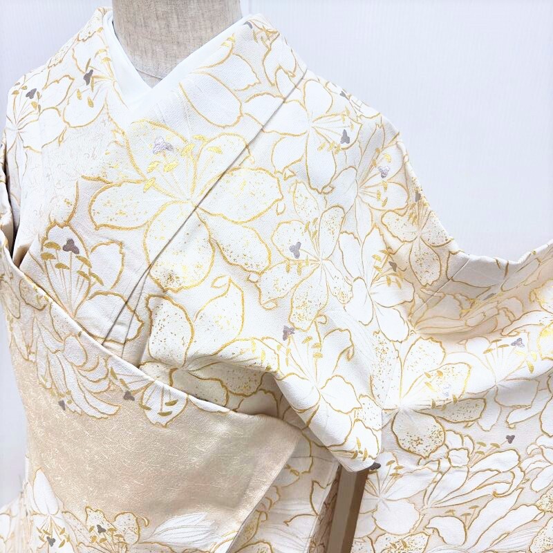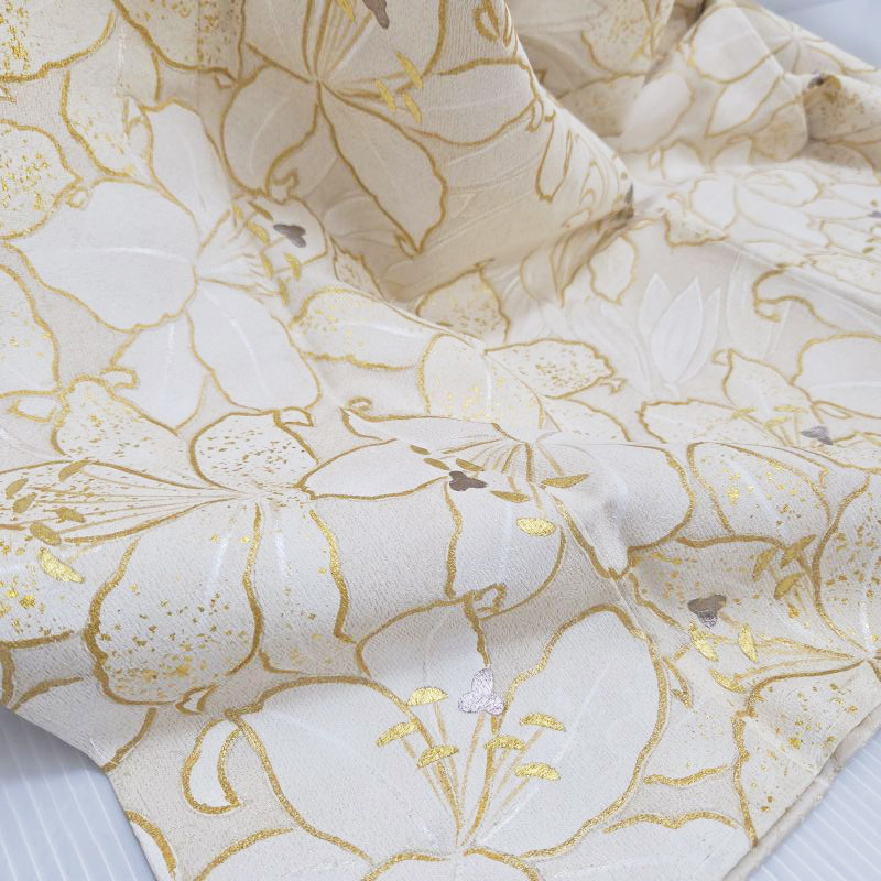 生地は久保田一竹工房の金通しの生地を使用されています。 全体のほのかなキラメキがカサブランカの白を一層引き立てます。