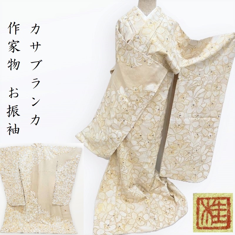 和のドレスとして御覧頂きたい豪華なカサブランカを一面に染めた作家物のお振袖です。