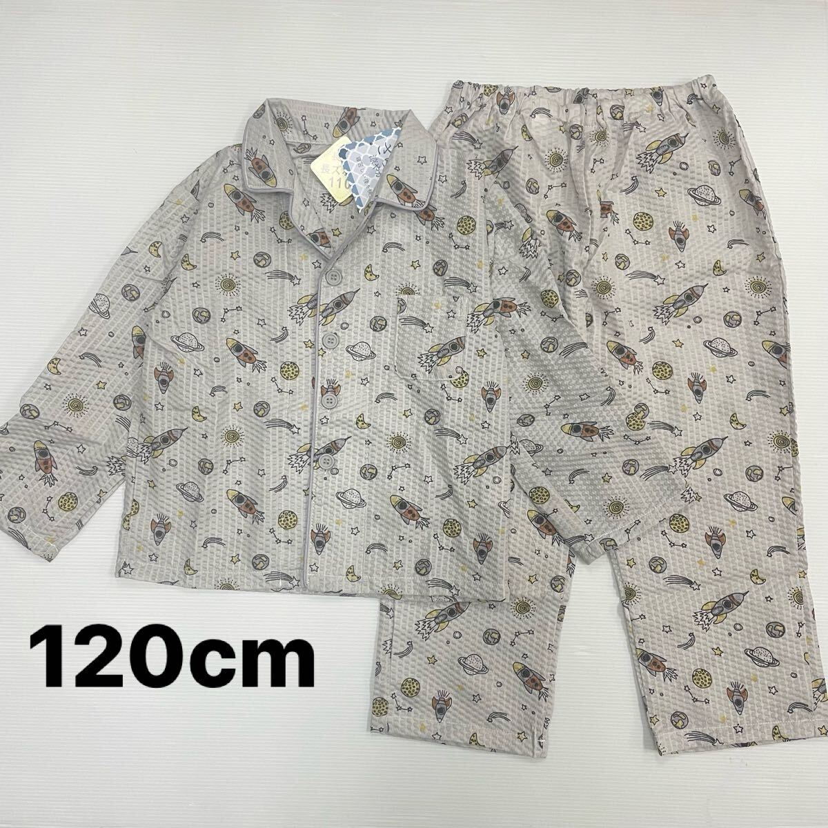 新品64065 サイズ120cm グレージュ ロケットプリント ボーイズ長袖パジャマ さらさら快適素材 涼やかな着心地 春夏用 ルームウエアキッズ