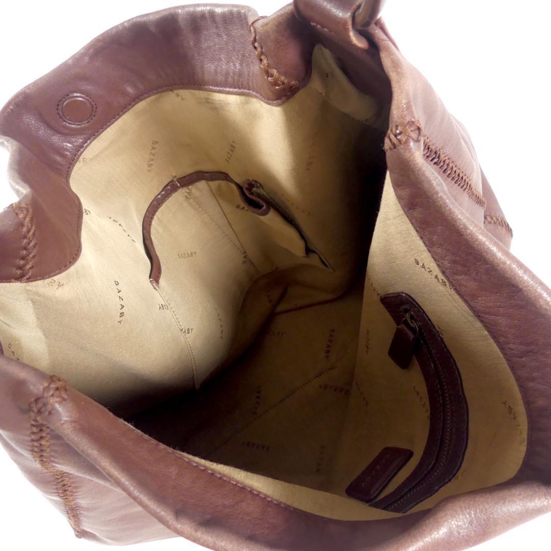 即決★SAZABY★オールレザートートバッグ サザビー 茶 本革 ハンドバッグ 本皮 ショルダー 旅行 カバン 出張 鞄