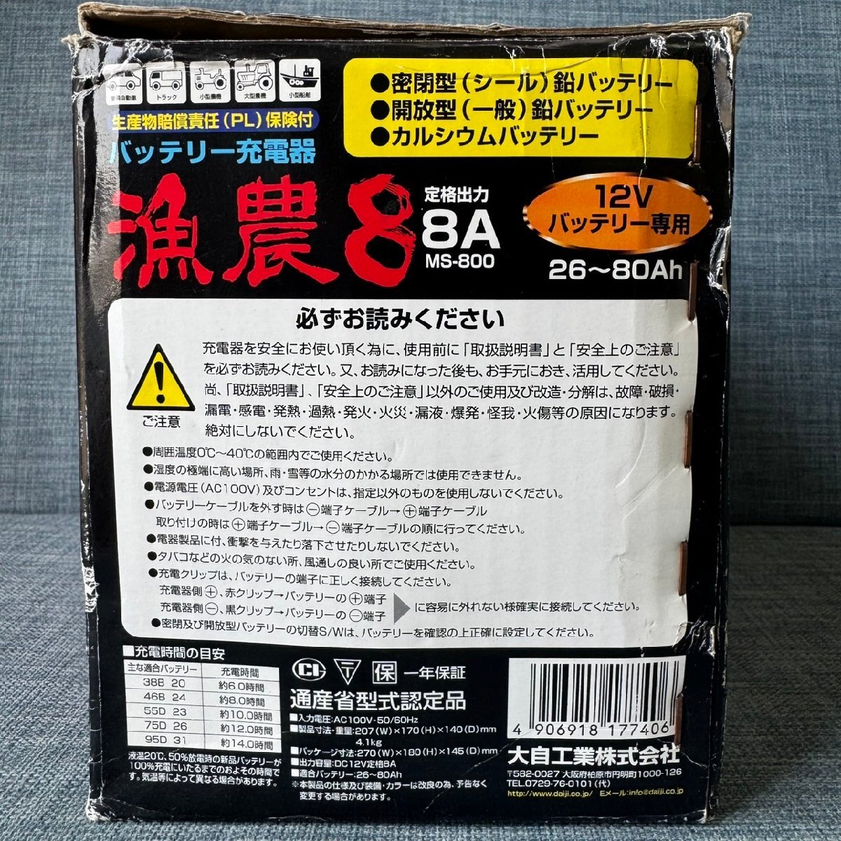 ★新品未使用【 Meltec / メルテック バッテリー充電器 漁農8 MS-800 準定電流 定電圧方式 オートストップ回路 バッテリー 本体 】Q05324