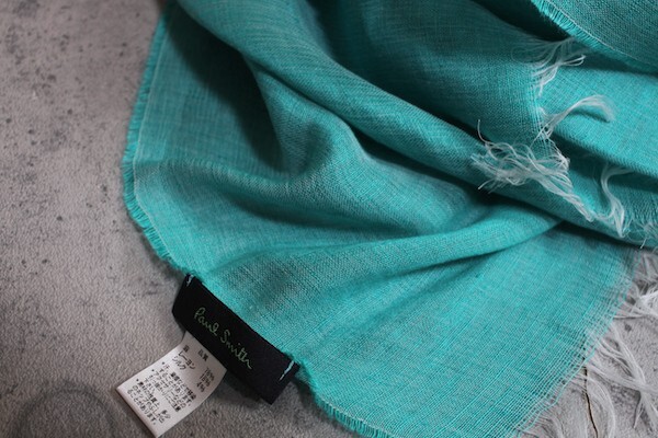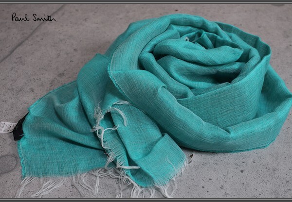 新品 ポールスミス 春夏 イタリア製 シルク混 リネン レーヨン ストール/青緑/PAUL SMITH/麻/絹