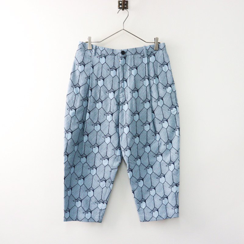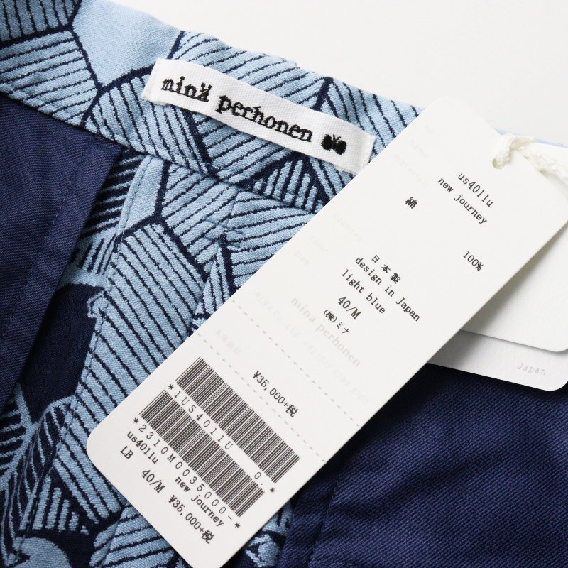 未使用 定価3.8万 ミナペルホネン mina perhonen new journey パンツ 40(M)/ライトブルー ジャガード コットン タック【2400014421958】