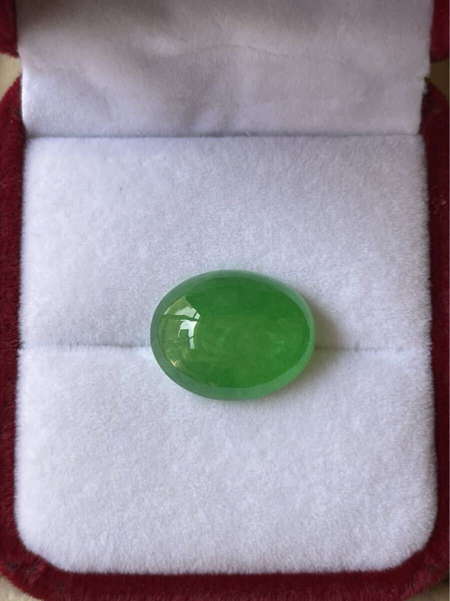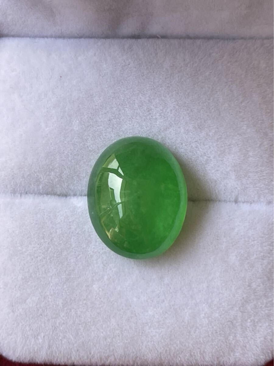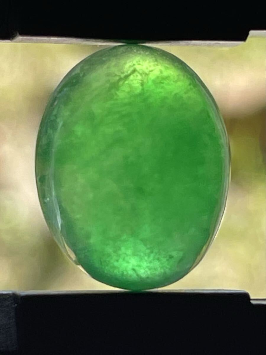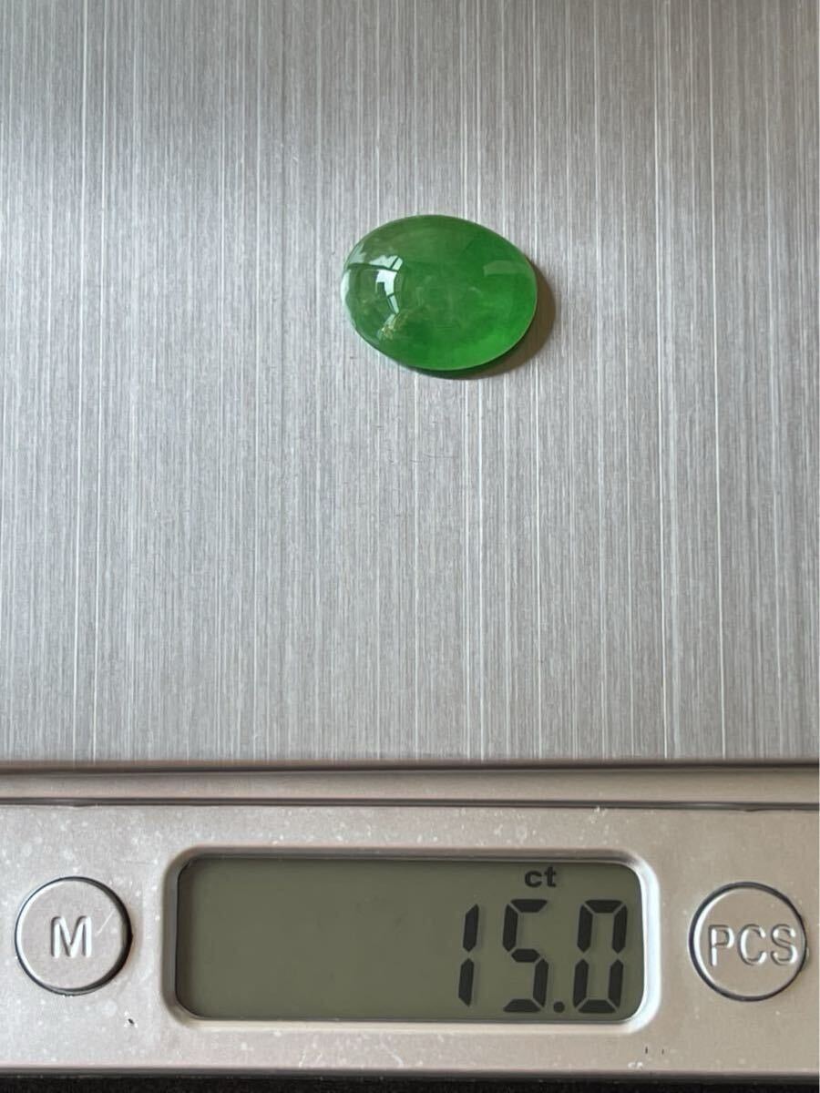 天然翡翠裸石 アイスジェイダイト カボションルース 高級jewelryジュエリーオーダーメイド用 綺麗な緑色 重さ15.0ct MIRE1134