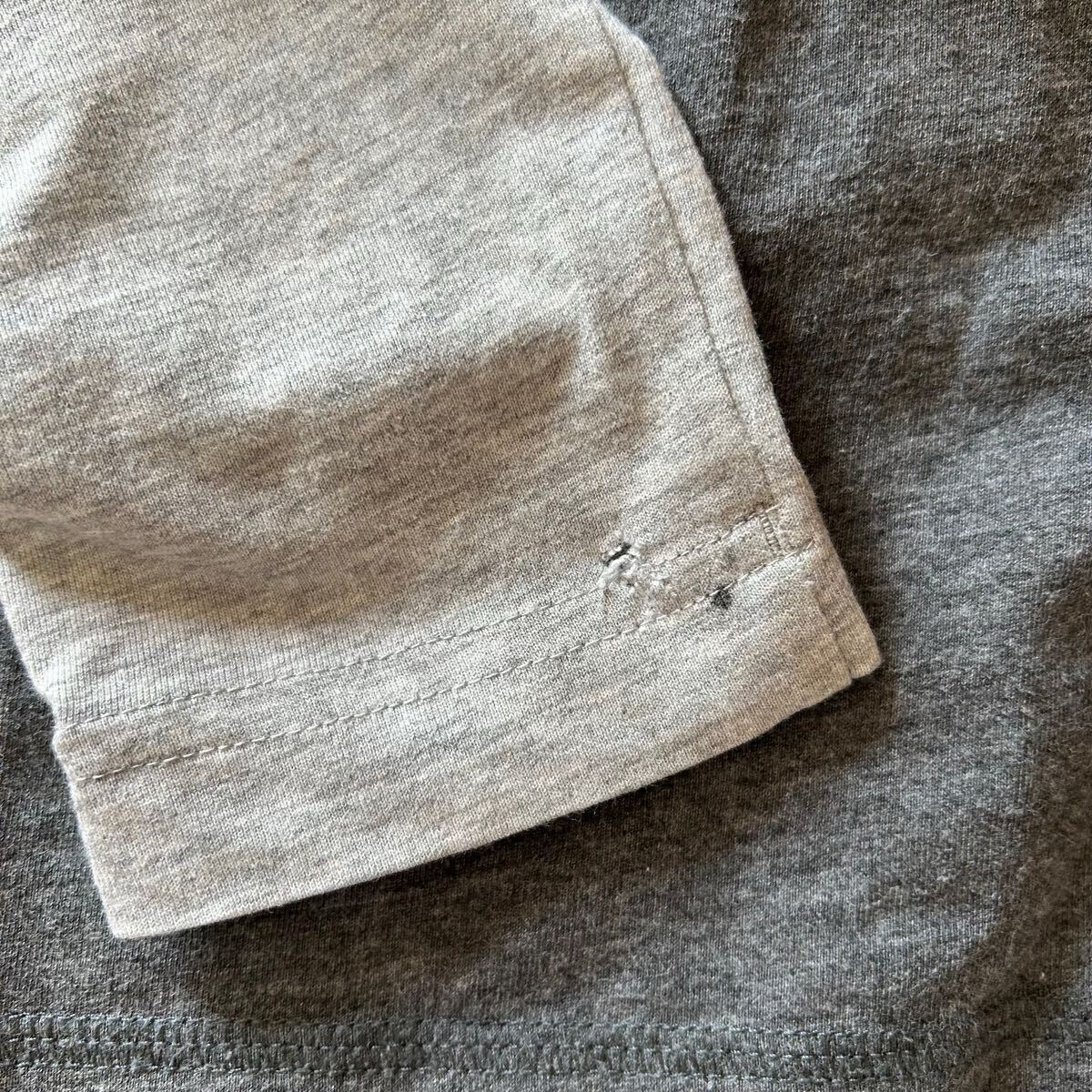 右袖に黒いペンの跡が1ヶ所、破れた穴が1ヶ所、袖のステッチの糸が切れています。(写真6、7枚目)