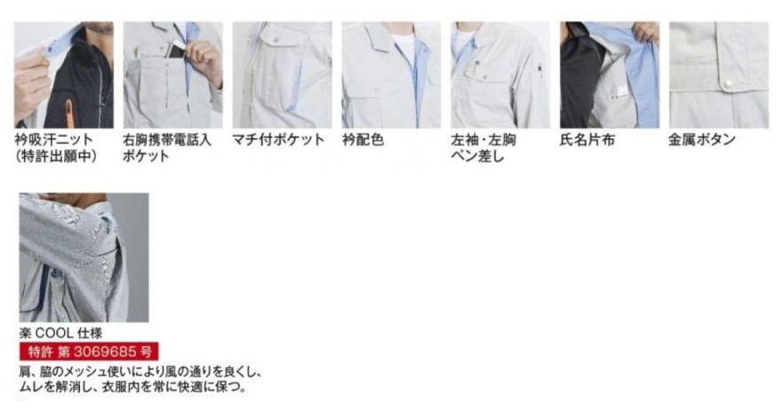 1406ブルゾン、1456半袖ブルゾン、1405長袖シャツ(年間対応)、1455半袖シャツ