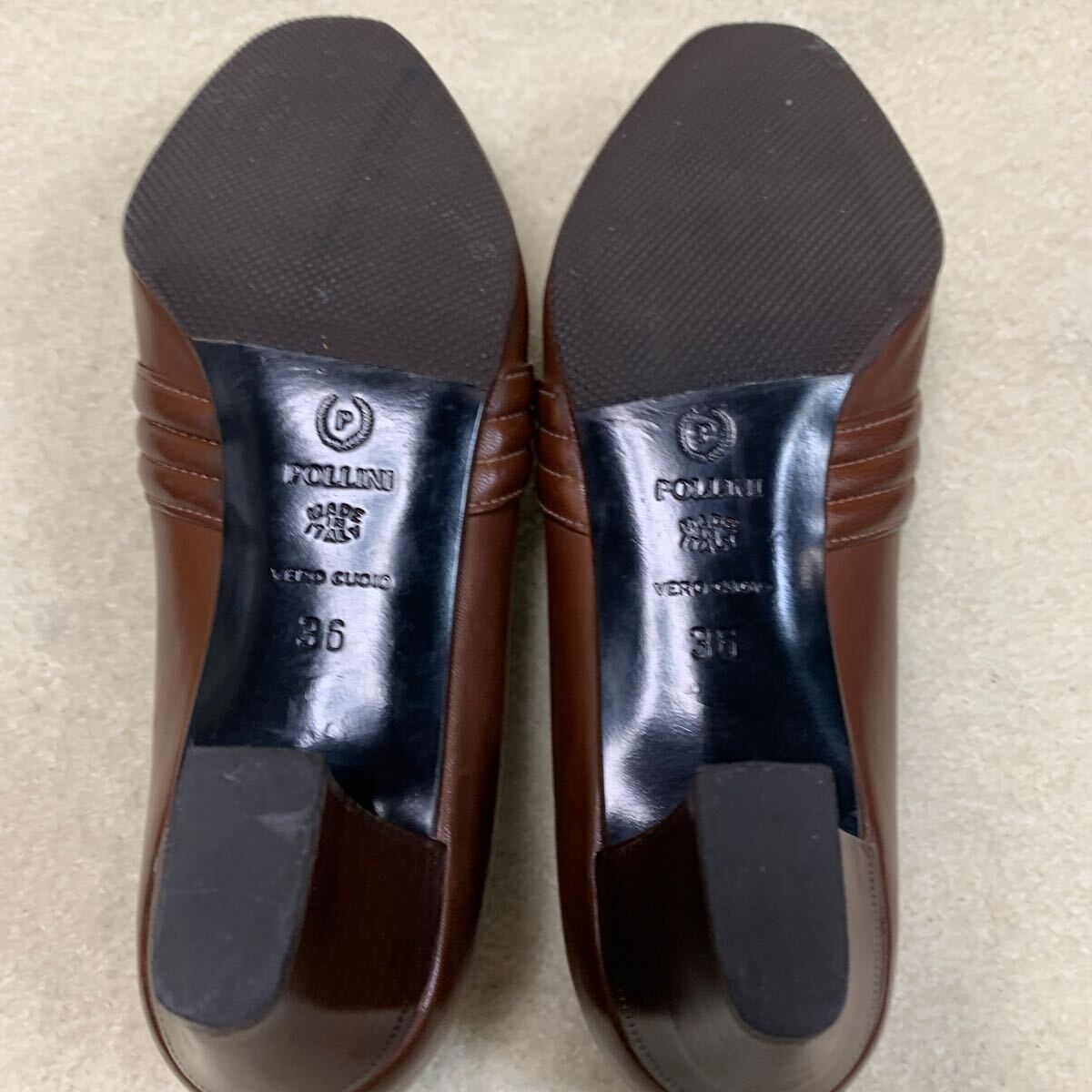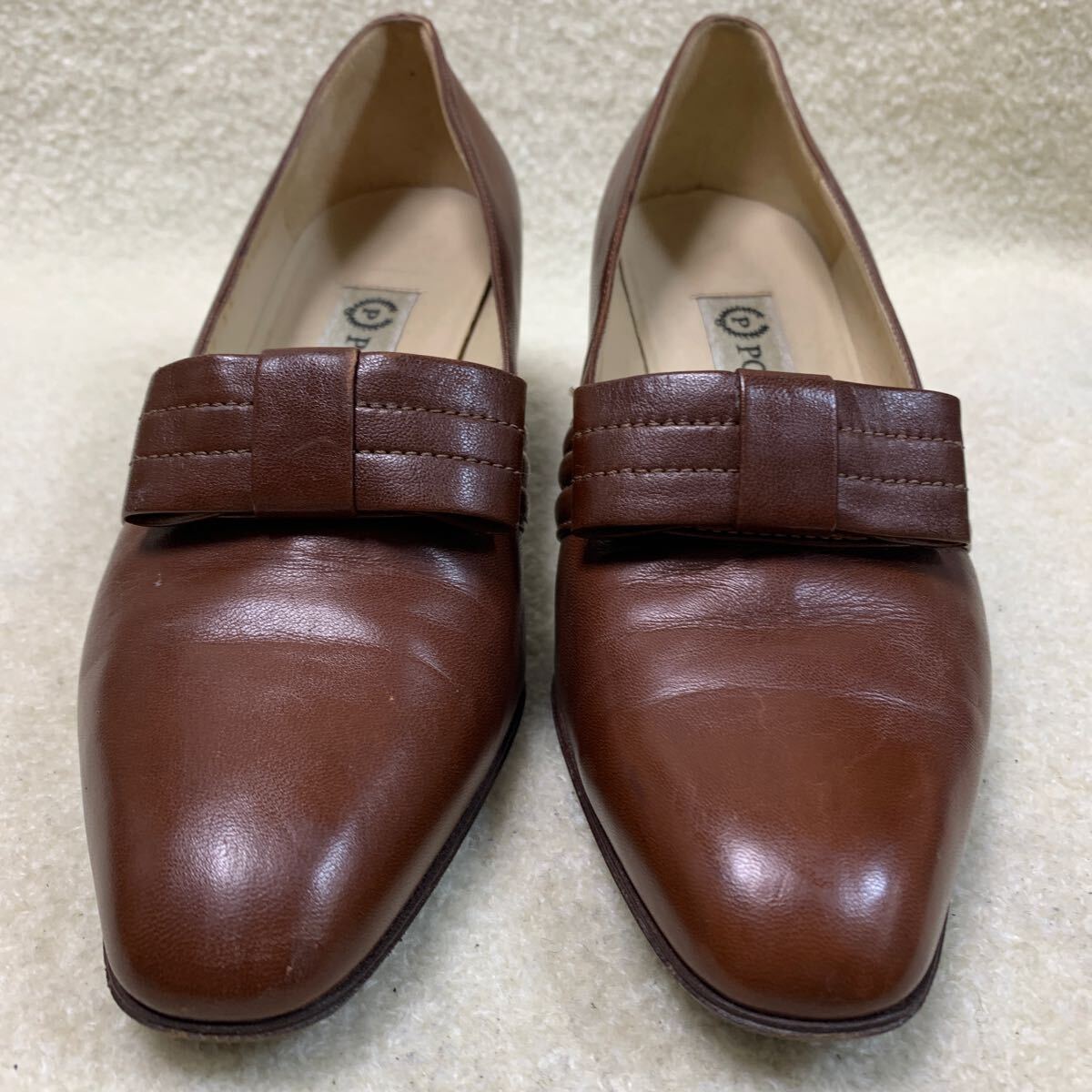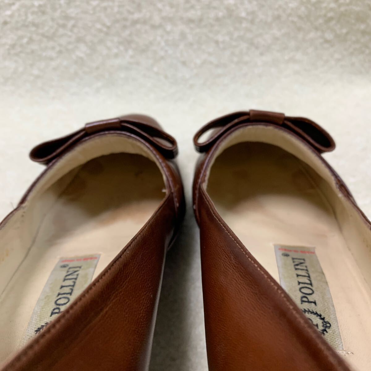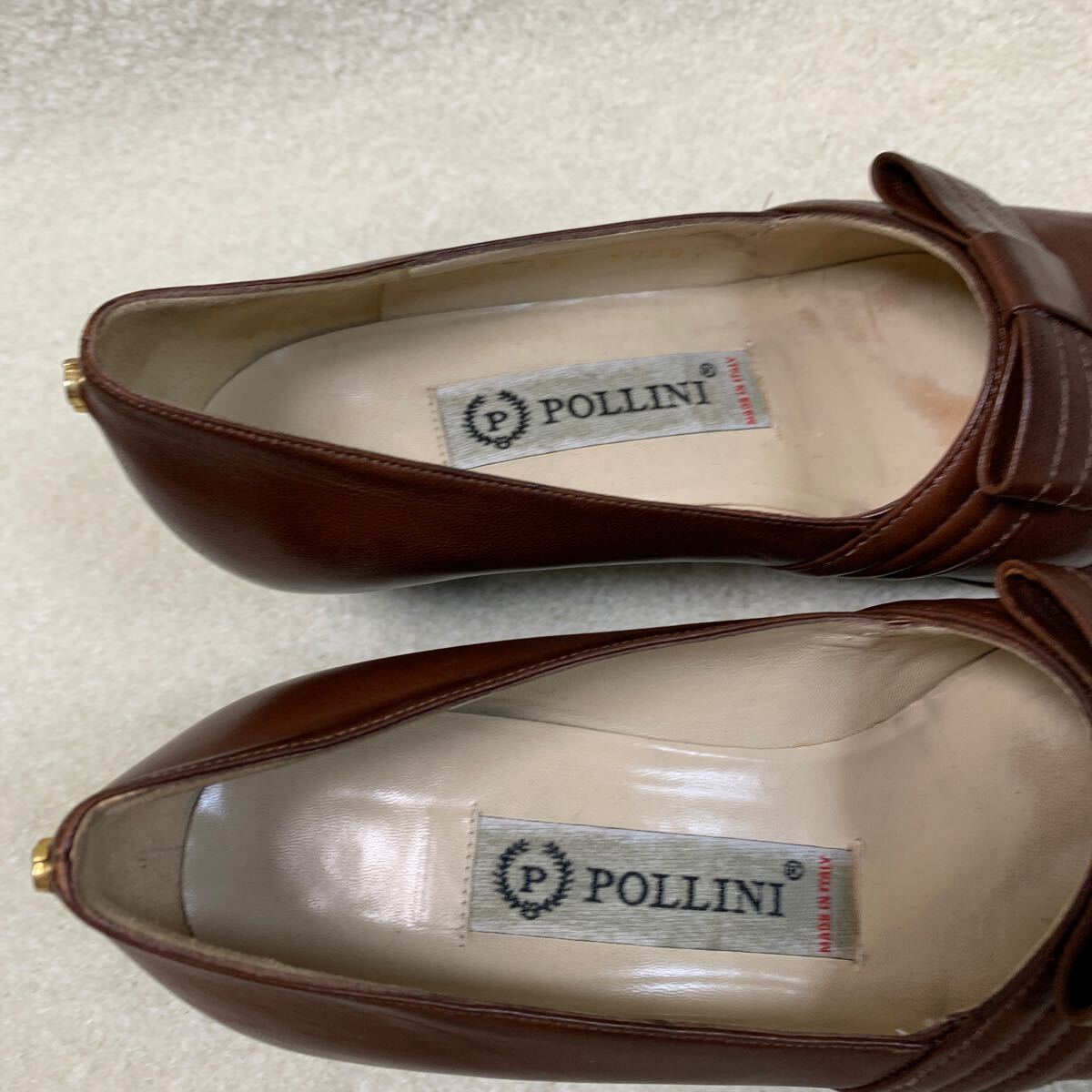 ポリーニ POLLINI 本革レディースパンプス イタリア製 ブラウン 23㎝ヒール約5㎝ 美品
