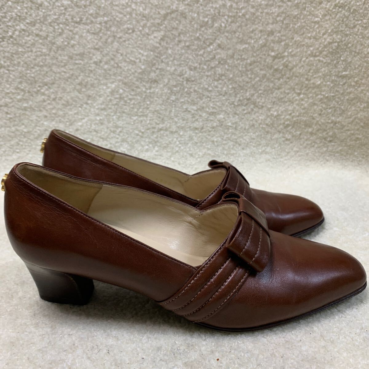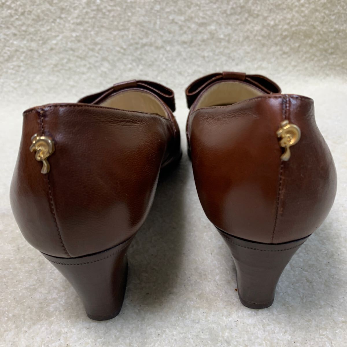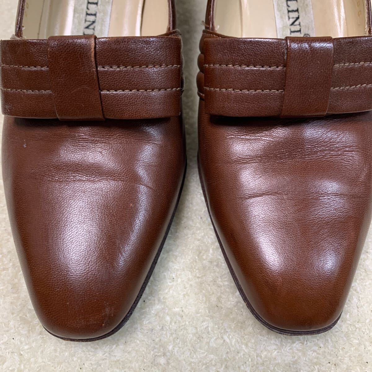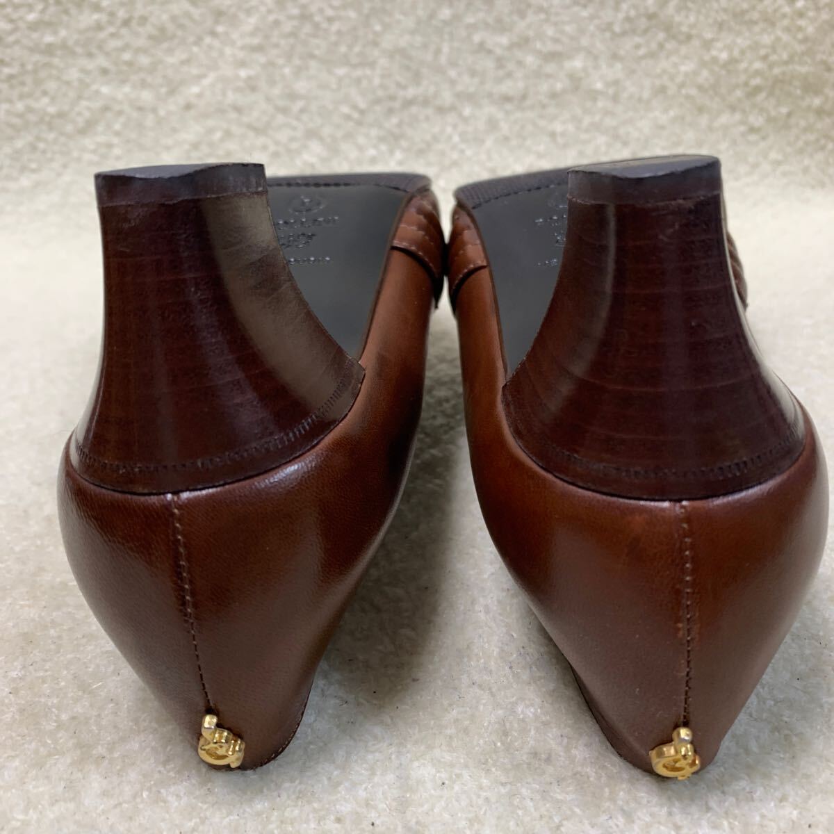 ポリーニ POLLINI 本革レディースパンプス イタリア製 ブラウン 23㎝ヒール約5㎝ 美品