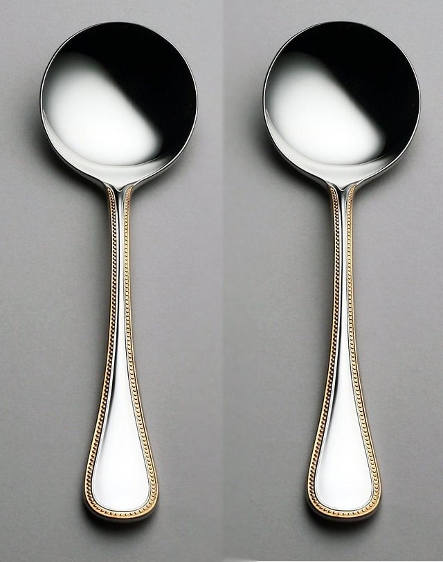 ☆ラッキーウッドフレンチアクセント金彩ブイヨンスプーン2本高級ステンレス18-10使用日本製新品