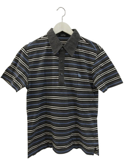 バーバリーブラックレーベル BURBERRY BLACK LABEL ポロシャツ 半袖 ボーダー グレー系 ブルー 綿 コットン 2 M トップス レディース