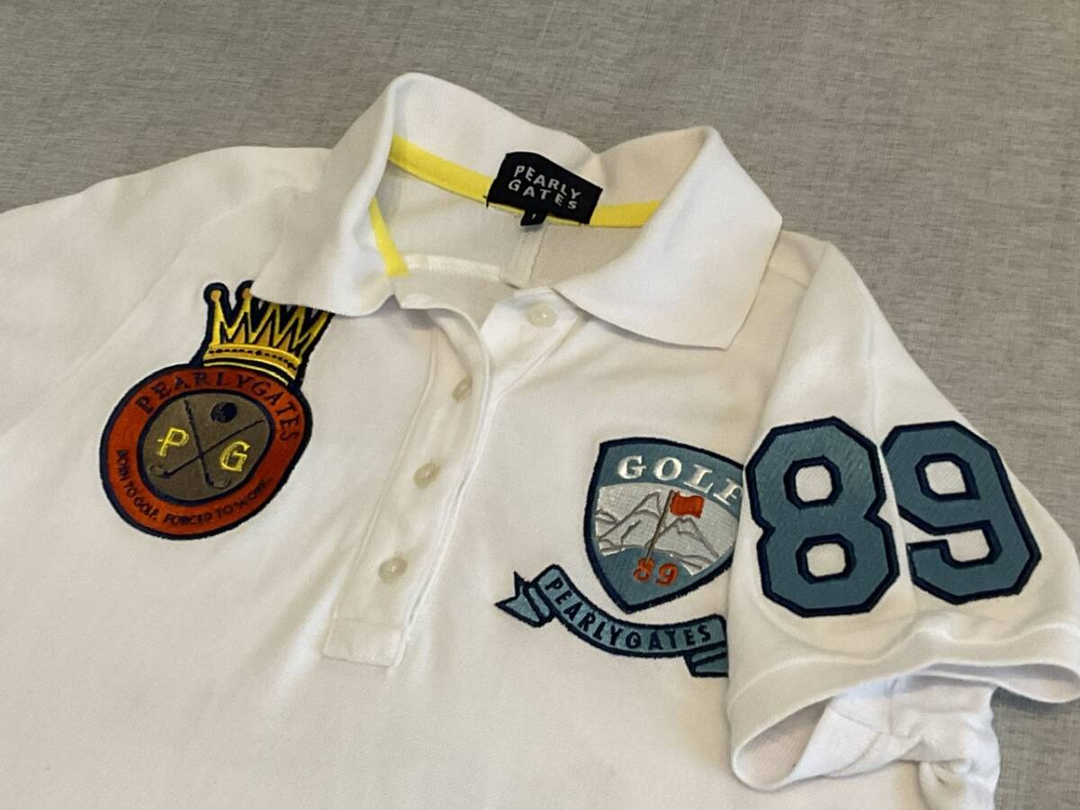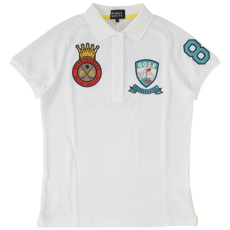 PEARLY GATES / パーリーゲイツ / 鹿の子 ロゴワッペン コットンストレッチ 半袖 ポロシャツ 日本製 / Size 1 / 美品 / PG229