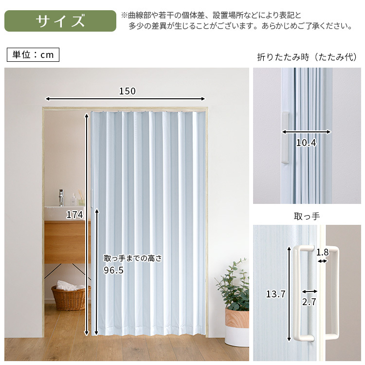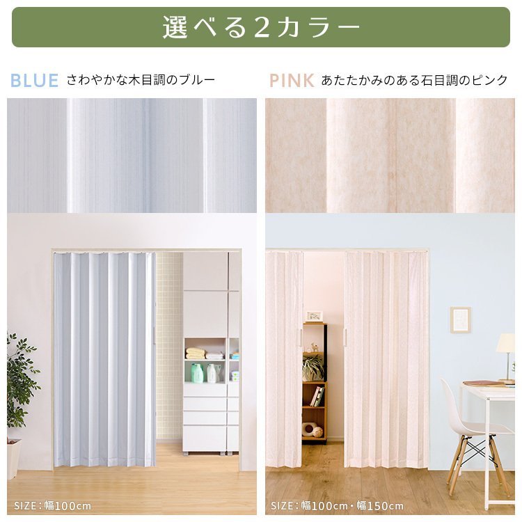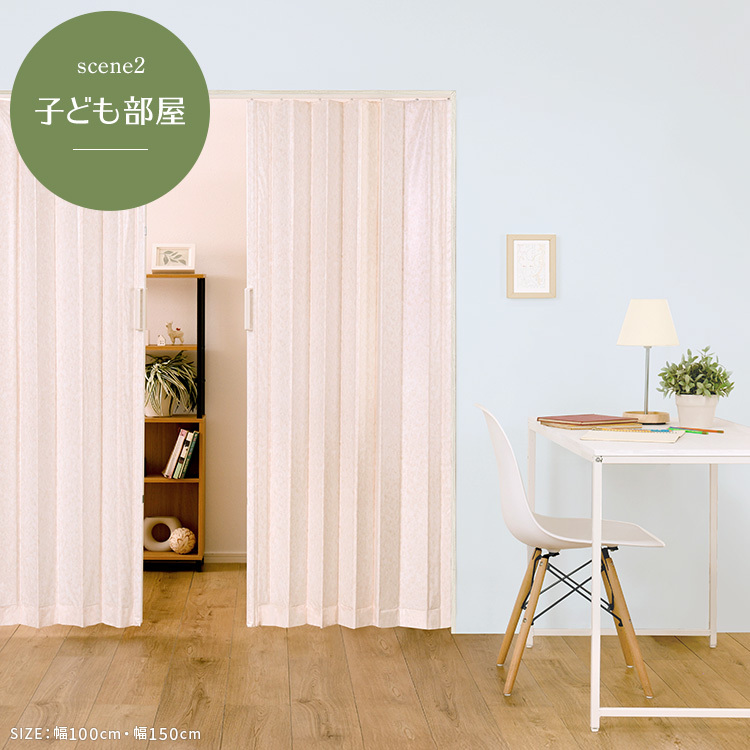 簡単丈詰め可能 シンプルな模様のアコーディオンドア 150幅  Freis-フレイス- ピンク