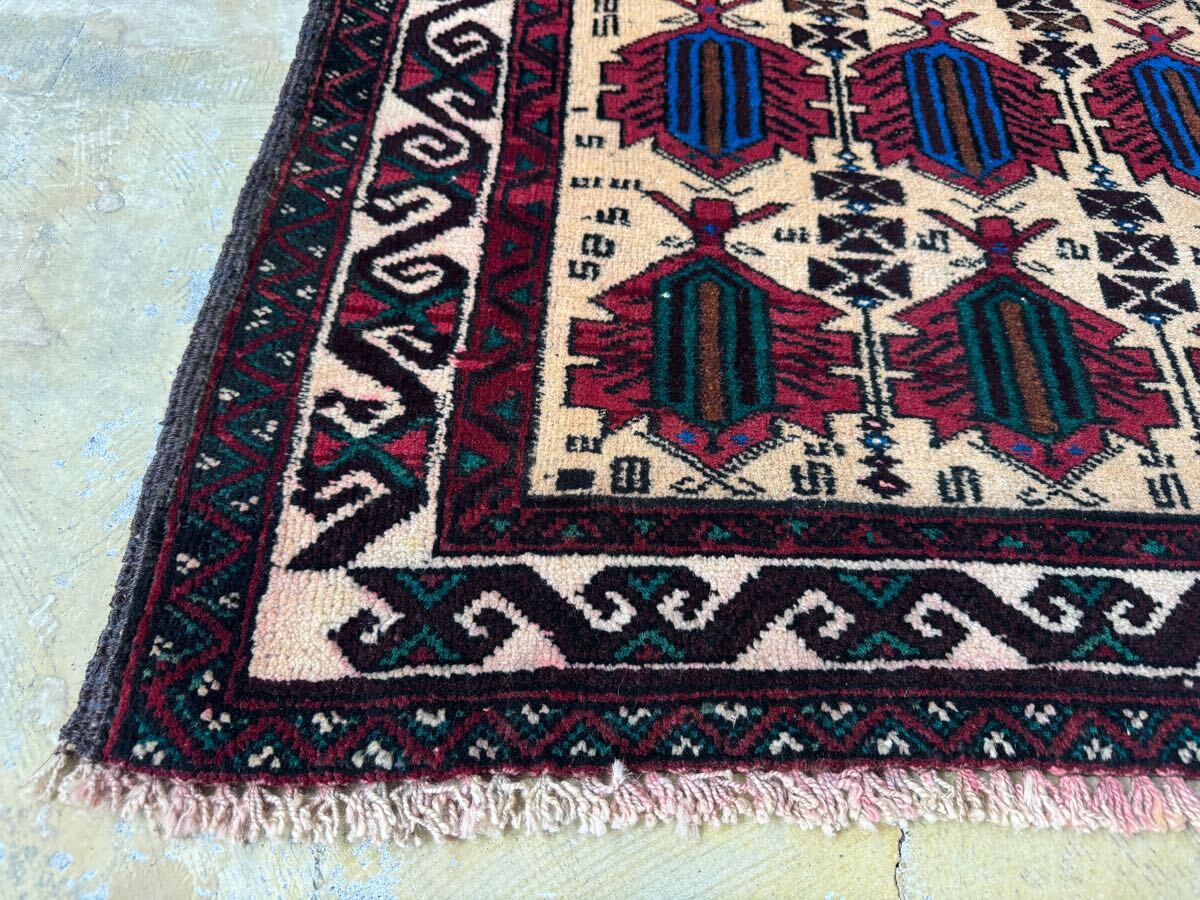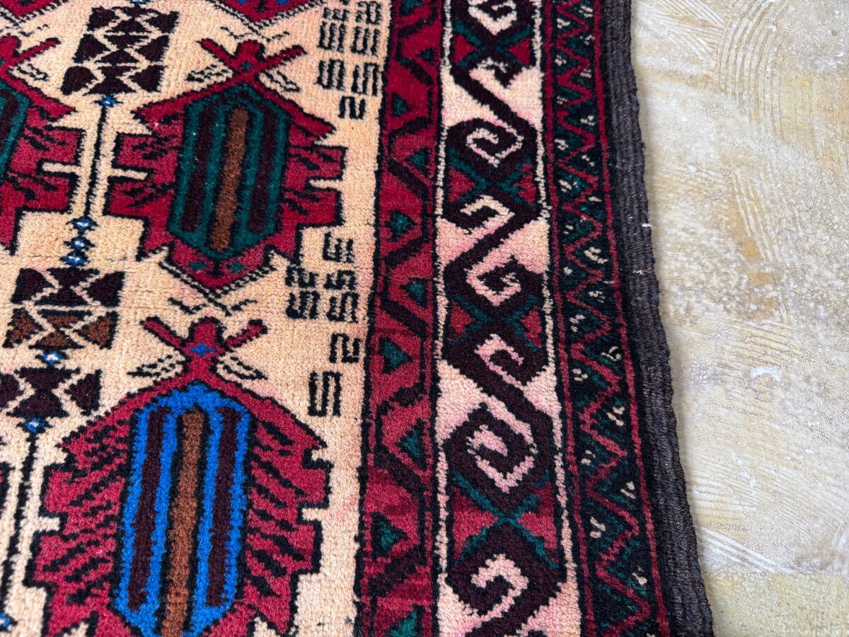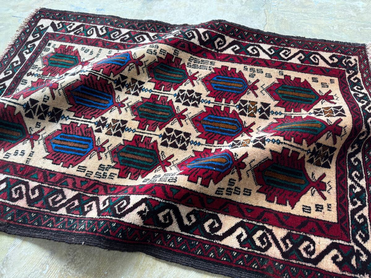 ¥26,000→¥16,000 トライバルラグ ヴィンテージ家具 124×81cm 手織り 絨毯 カーペット ヴィンテージ ラグ ペルシャ絨毯