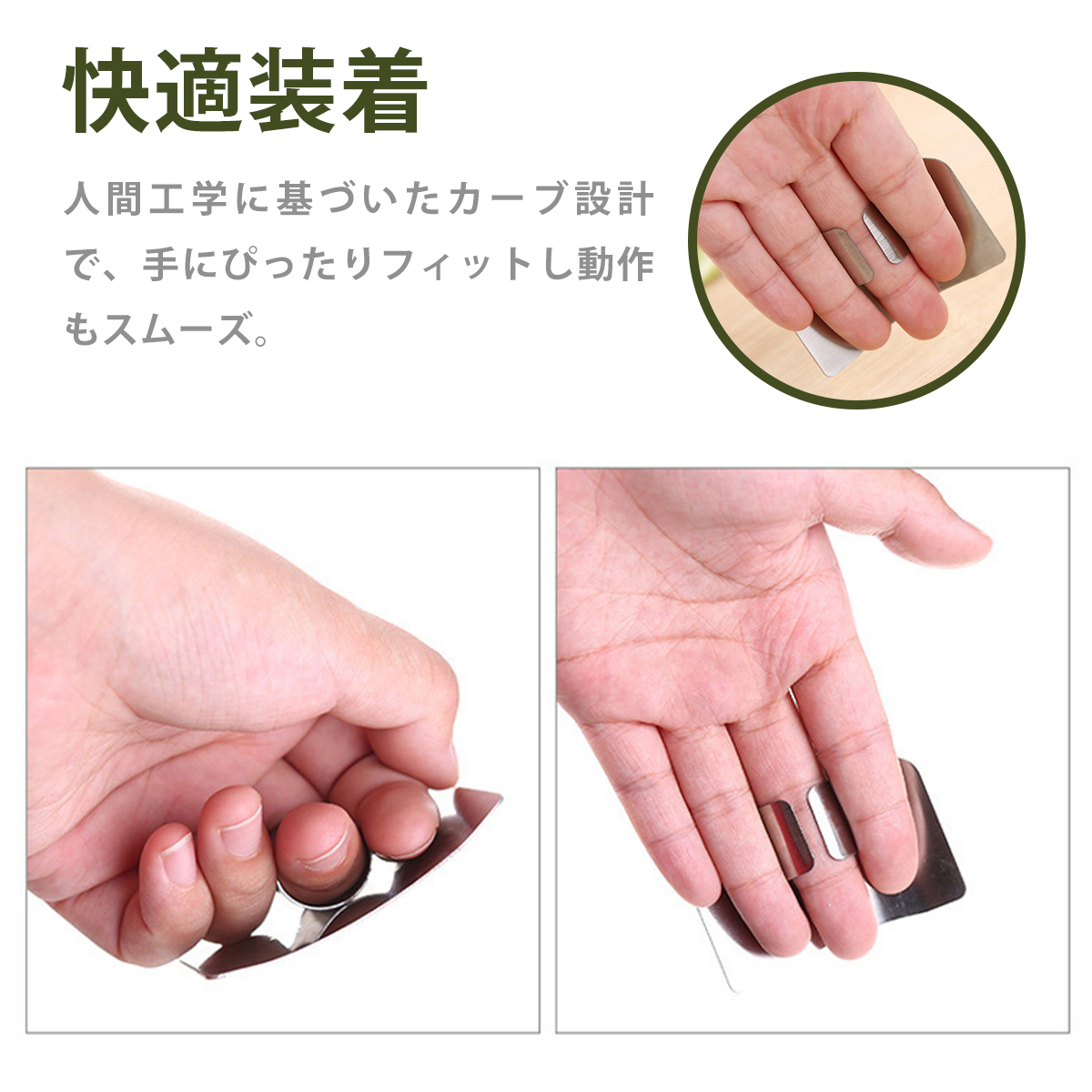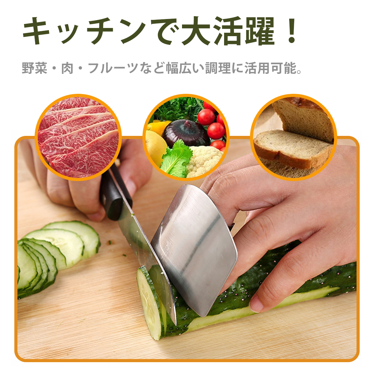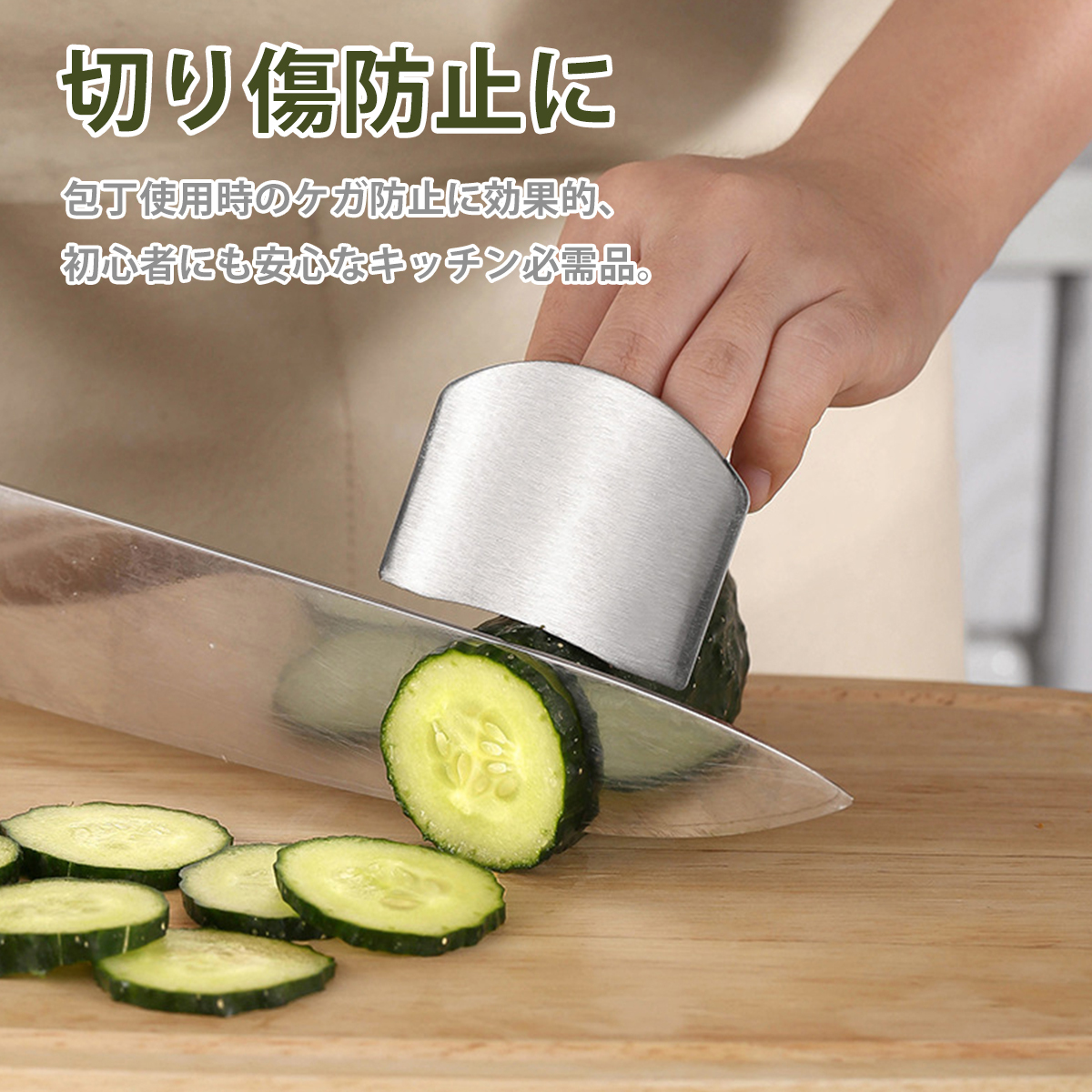 | 商品の説明 | 1.【調理中の安心感を、あなたの指先に】:高品質ステンレス製の切菜用護指器で、包丁作業の怪我リスクを大幅軽減。野菜スライス、肉のカット、果物の皮むきにも大活躍。 2.【使いやすさ×デザイン性の両立】:ラウンド加工&磨き仕上げで、肌触りなめらか。スタイリッシュな英中刻印入りで、機能性だけでなく見た目も◎。 3.【手元が見やすく、切りやすい構造】:薄切りも自由自在!フィンガーガードのカーブ形状により、自然な指の動きが可能。包丁操作を邪魔しません。 4.【こんなシーンで大活躍】:野菜の千切り、肉や魚の下ごしらえ、フルーツの皮むきなど、細かい作業でも指をしっかり守ってくれます。 5.【サイズ調整可能で、家族みんなにフィット】:指輪部分はフリーサイズ設計。手の大きさを問わず、誰でも快適に装着可能。料理好きなパパ・ママ・お子様にも。 |