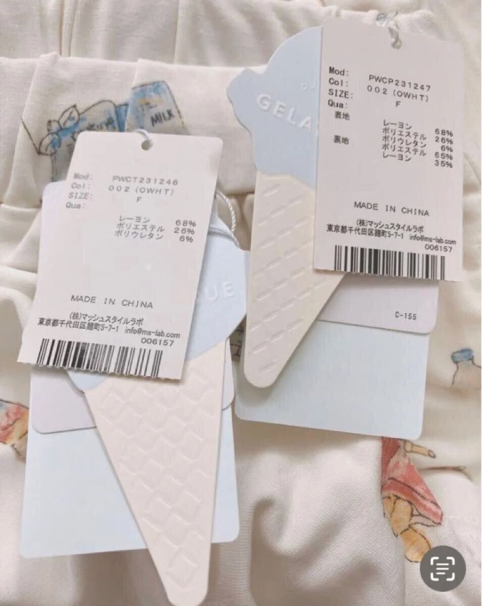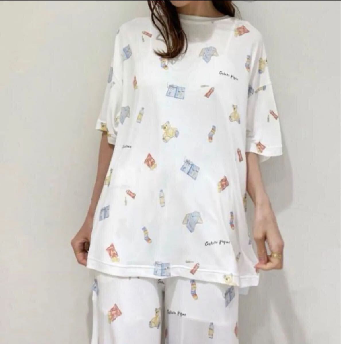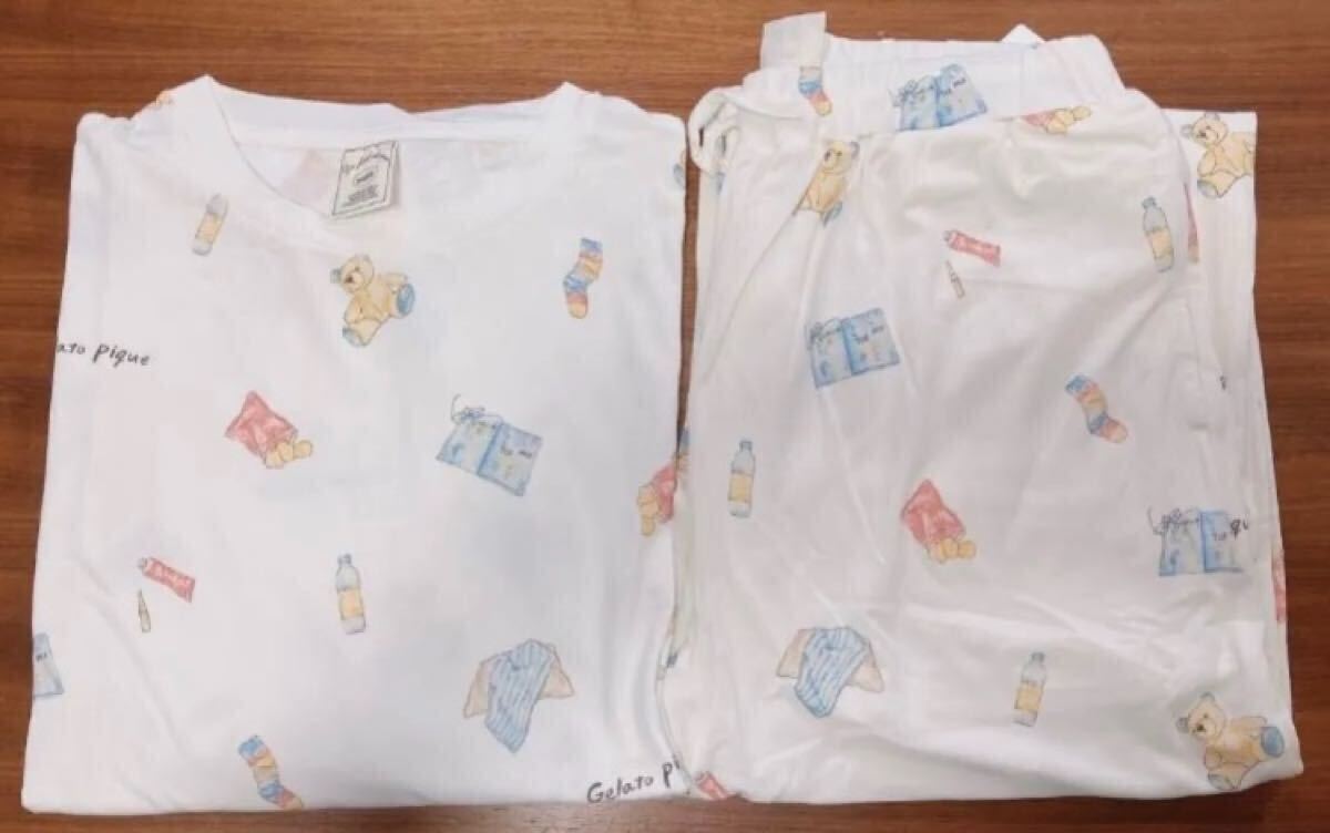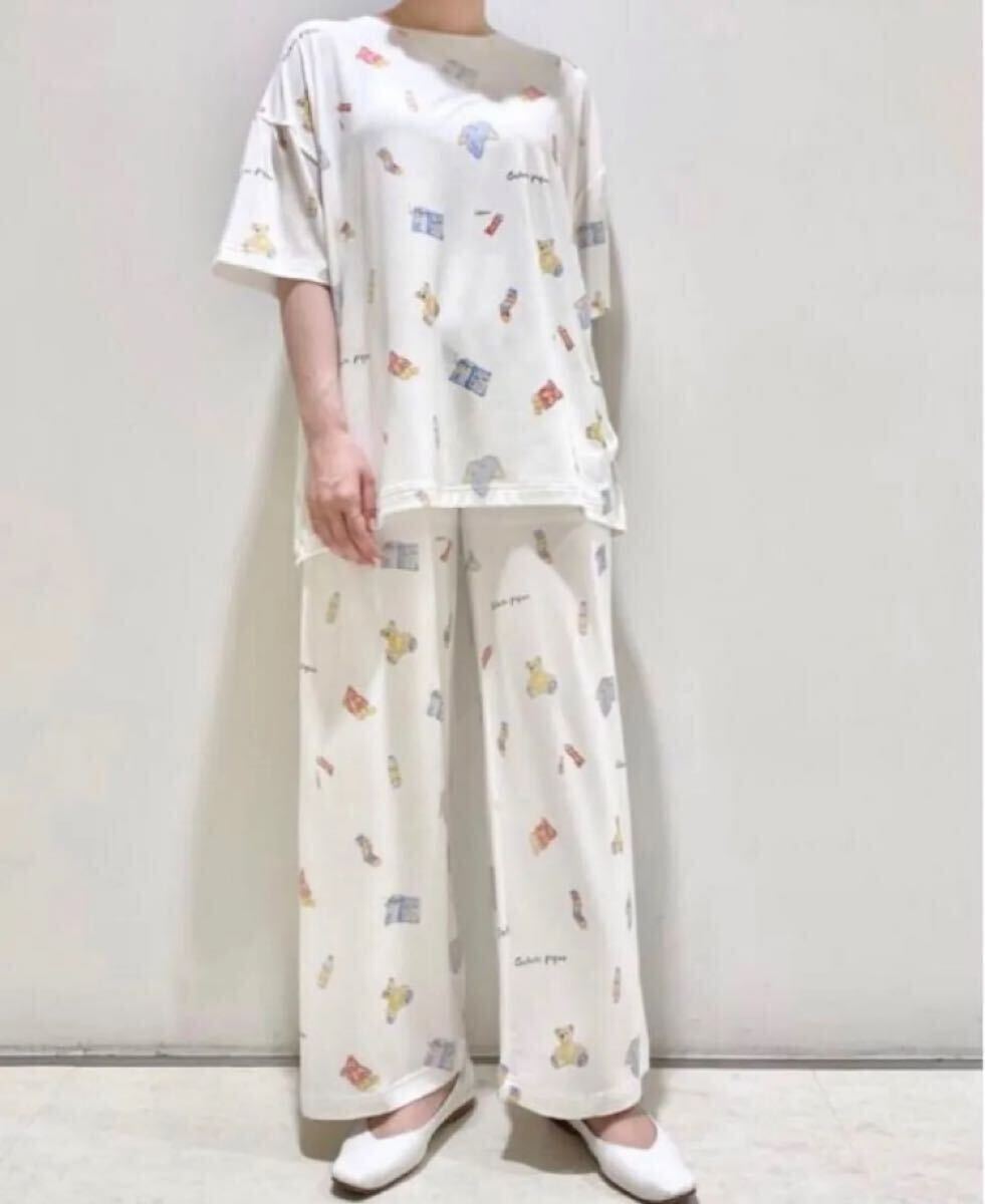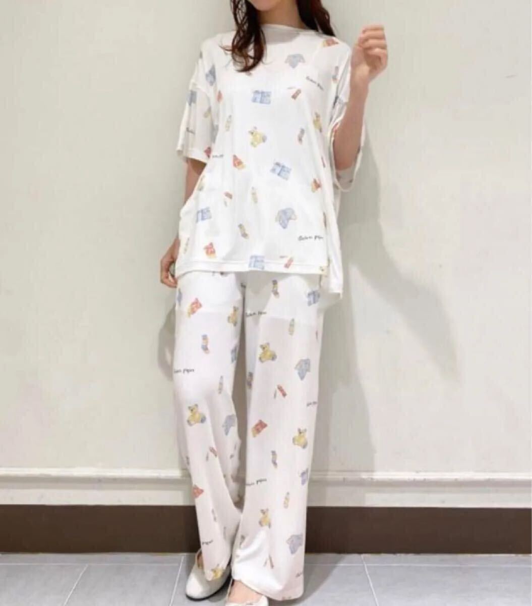 * 新品タグ付き ジェラートピケ ROOM柄Tシャツ&ロングパンツ 上下セット *