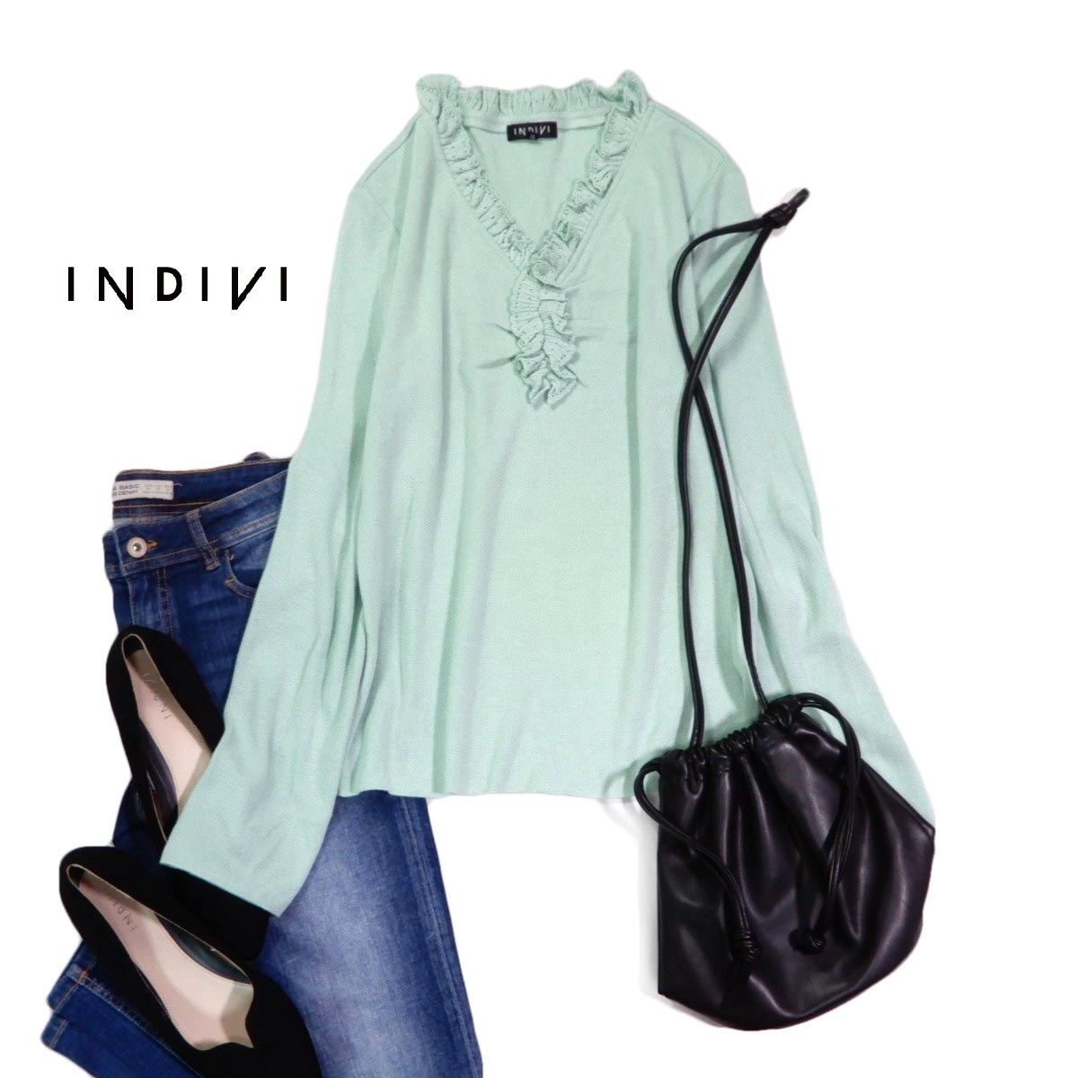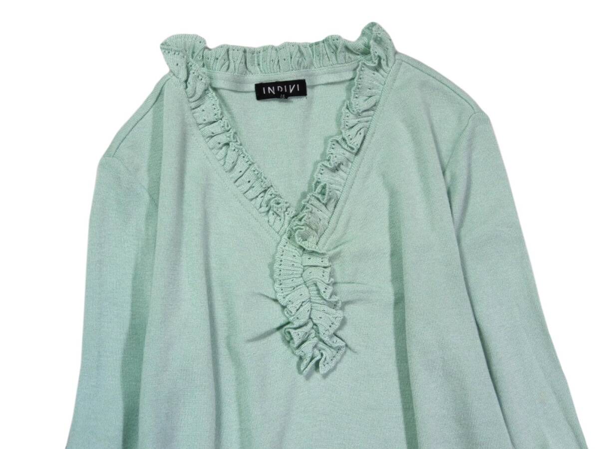 インディヴィ INDIVI 大きいサイズ 44 (15) キレイ色☆フリル ニット プルオーバー