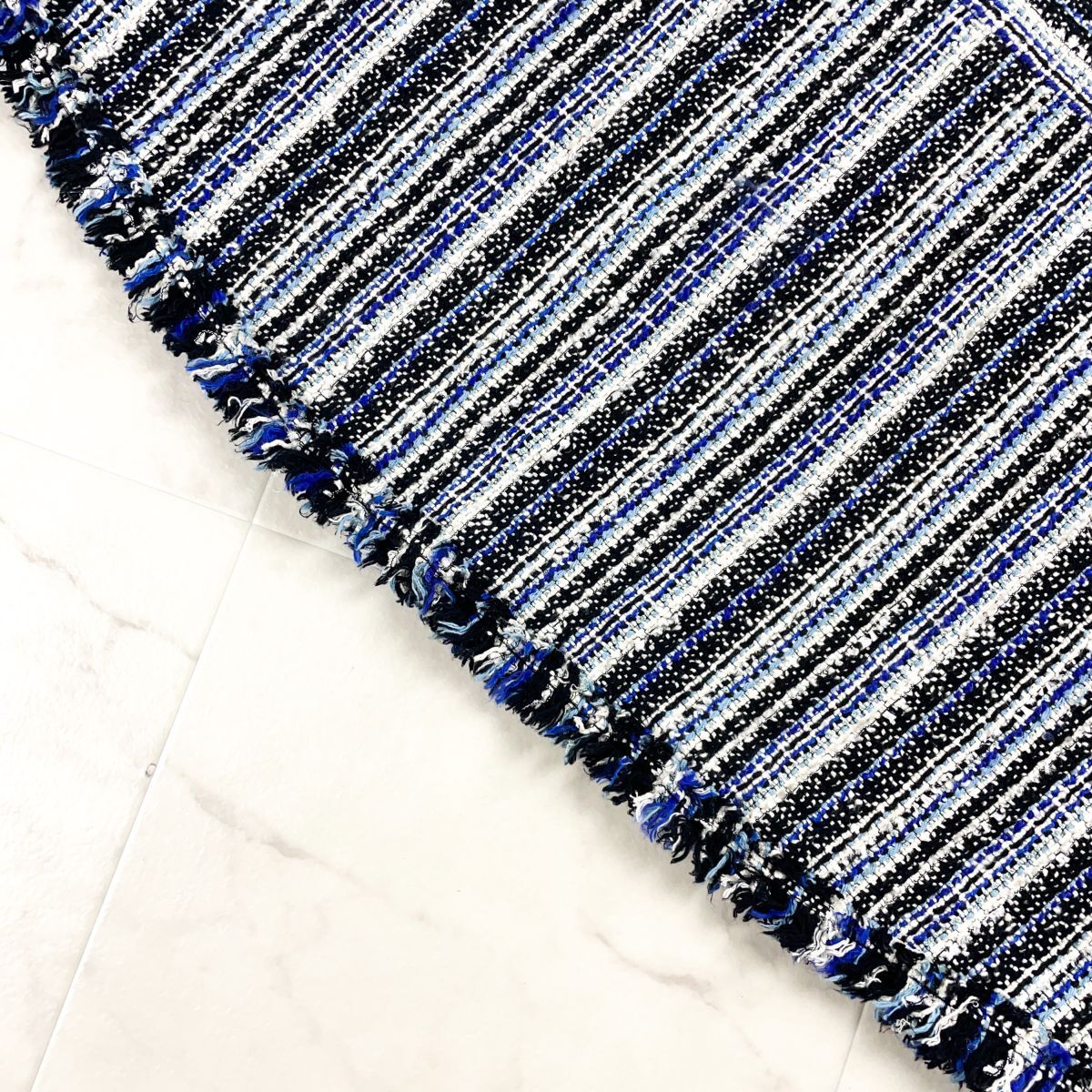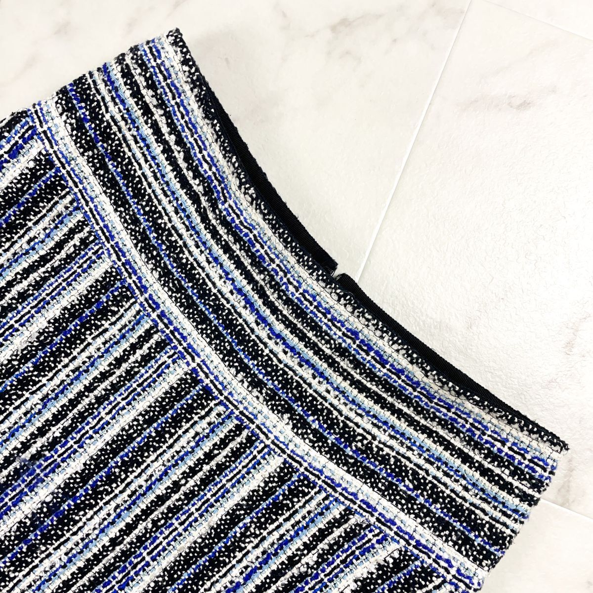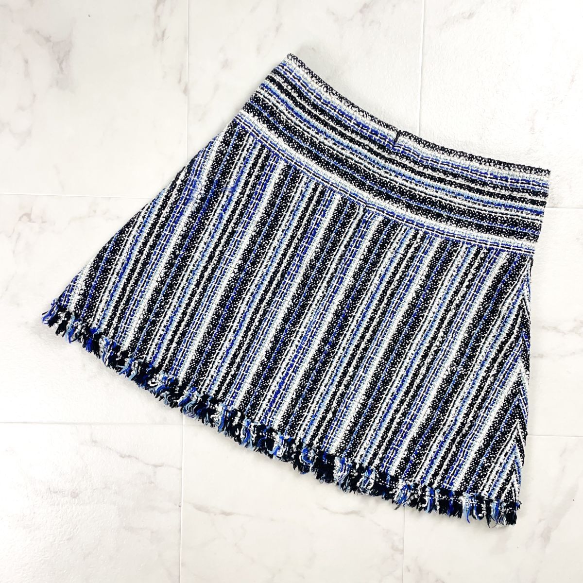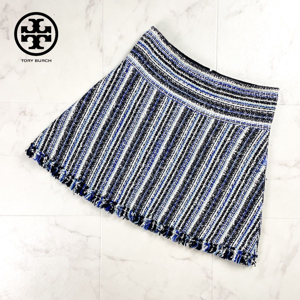 美品 Tory Burch トリーバーチ ラメツイード台形スカート ストライプ フリンジ ミニ丈 青 ブルー サイズ2*BD700