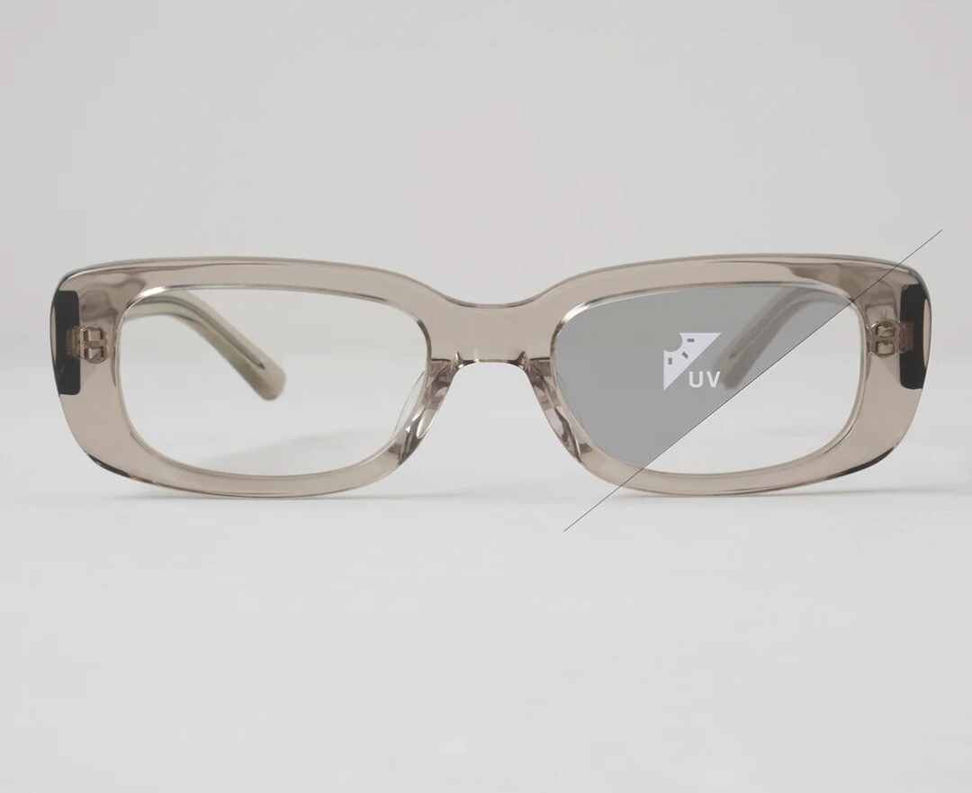 *紫外線の強弱によりレンズのカラーが変化する調光(GRY)レンズモデルです。