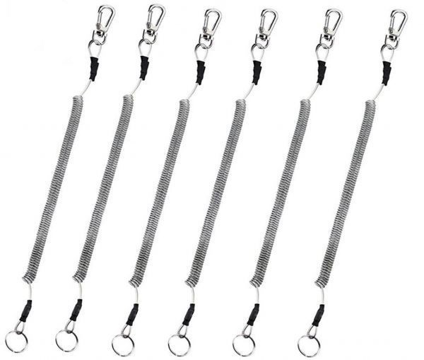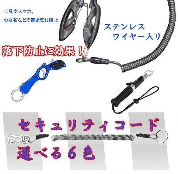 | 安全ワイヤーコード セーフティ-コード ワイヤーキーホルダー 落下防止 ストラップ 6本組 ステンレスワイヤー入り 最大伸長1.5m スパイラルコード ワイヤーコード カラビナ 小さなカルビナ フック | |||