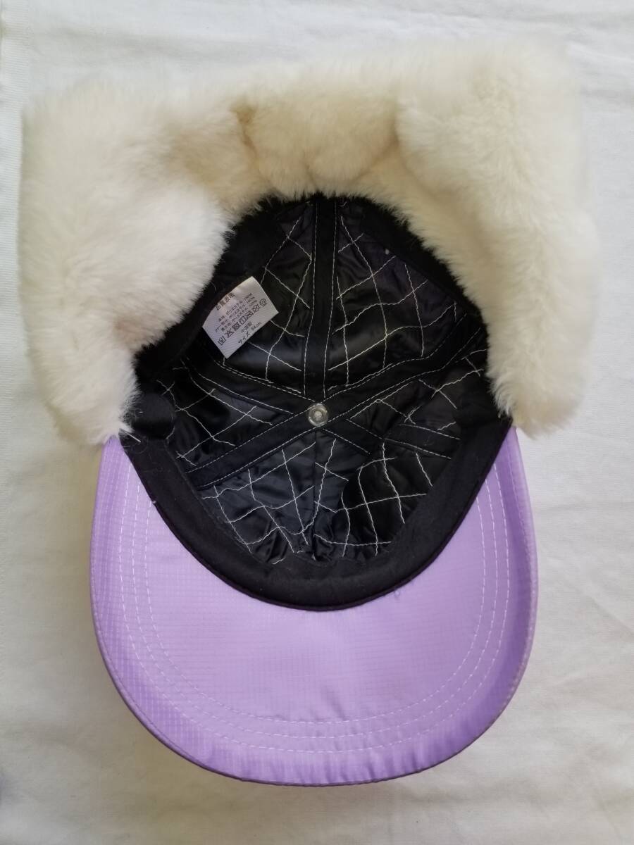 12.ハヤシ帽子 耳当て付き キャップ 白・紫 54cm