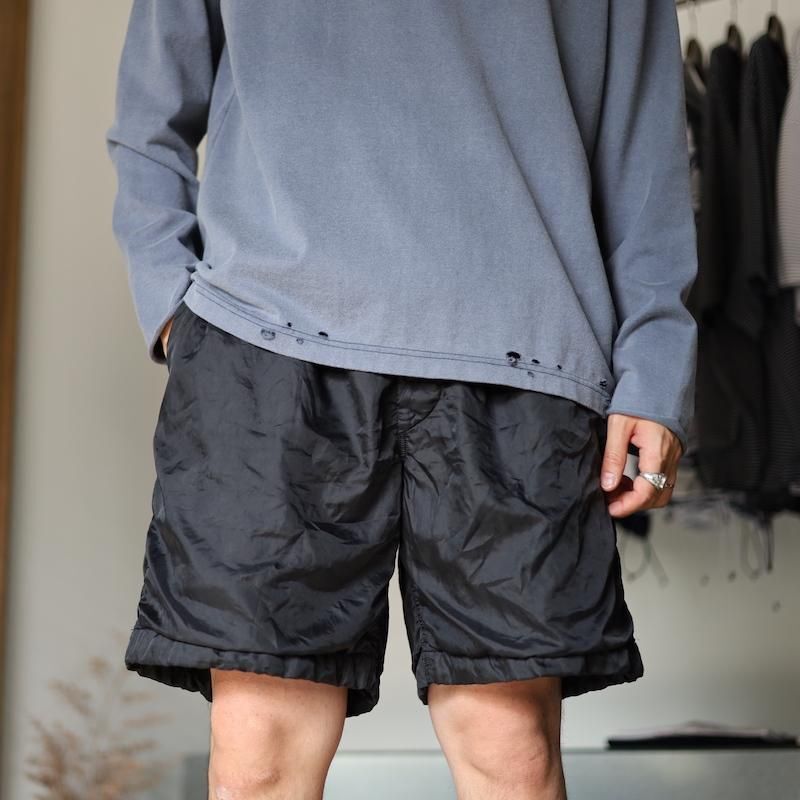 ISSUETHINGSが定期的に発表しているパッカリング表現で製作されており、裏地が大きく縮むことでボリュームが出るので、ゆったりとしたシルエットのハーフパンツに仕上げられています。