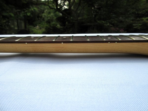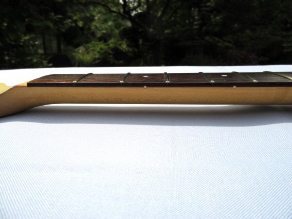 サイズ:ネックエンドのサイズは幅56.0mm、厚さは26.1mm(フレットは含みません)、ナット付近の幅は41.2mmです。