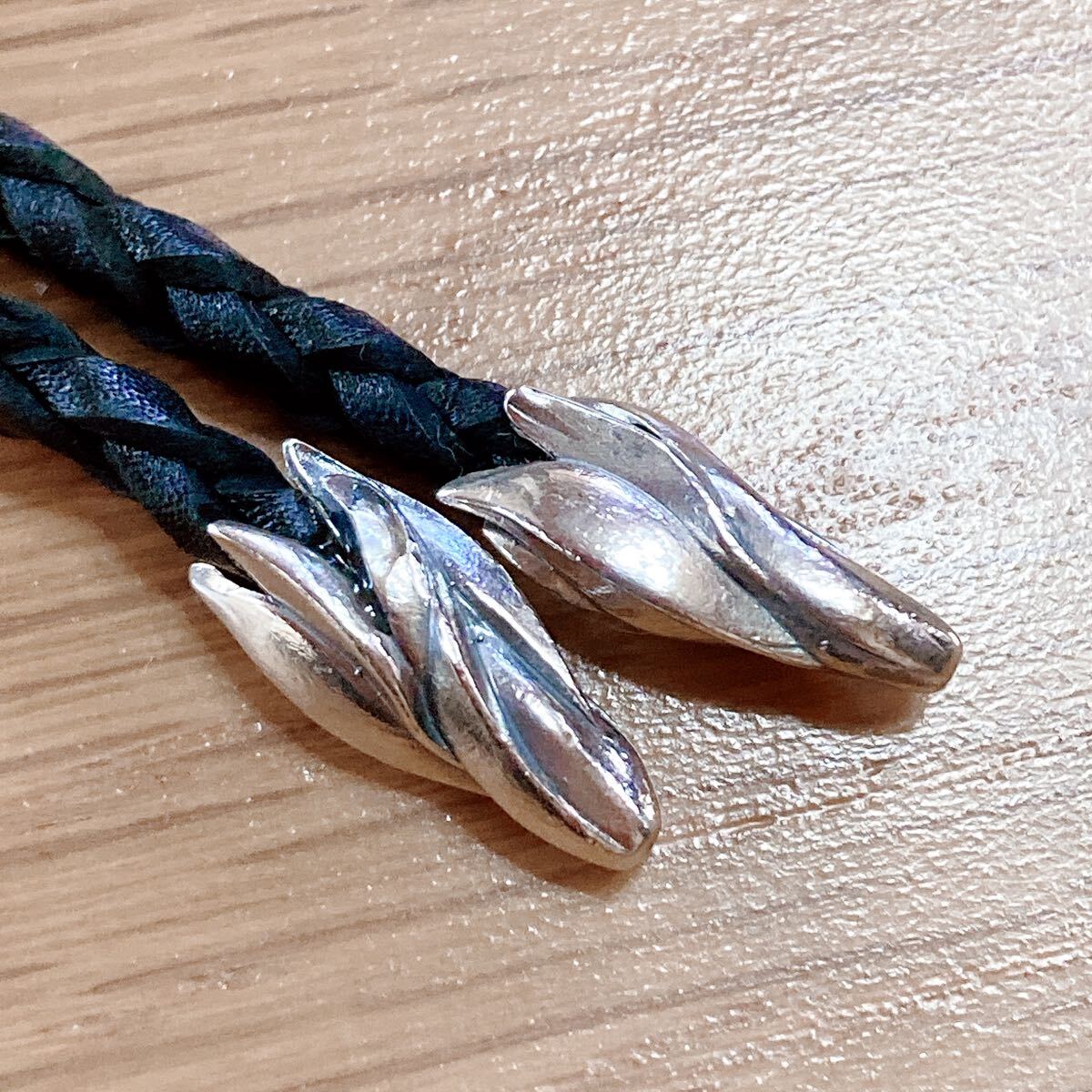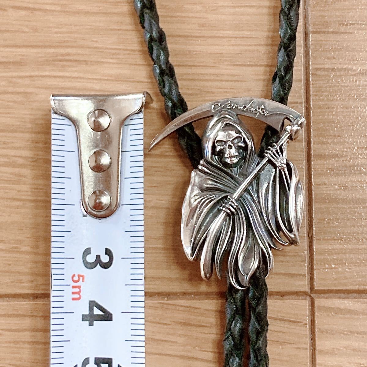 オリジナルで成形した死神のモチーフとエンドパーツはシルバー925、組紐は本革を使用したループタイです。