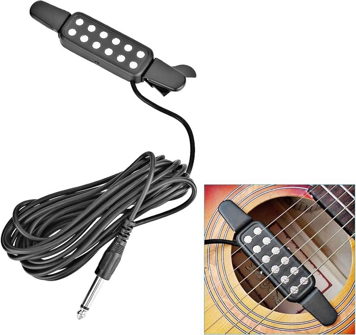 アコースティックやガットギターのサウンドホールに設置するだけです。 (穴あけ加工なしで取り付けられます)これだけでエレアコ、ドホールのトップエレガットに変身します。