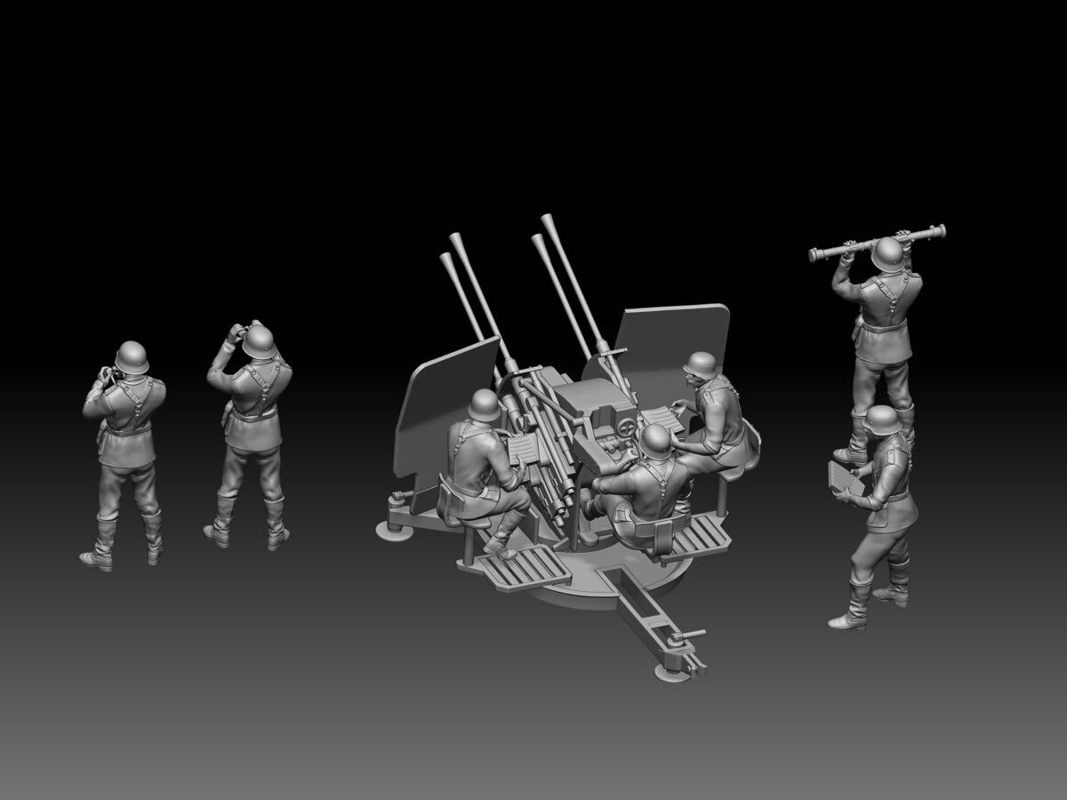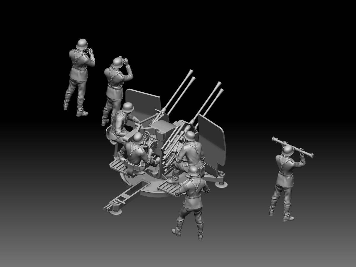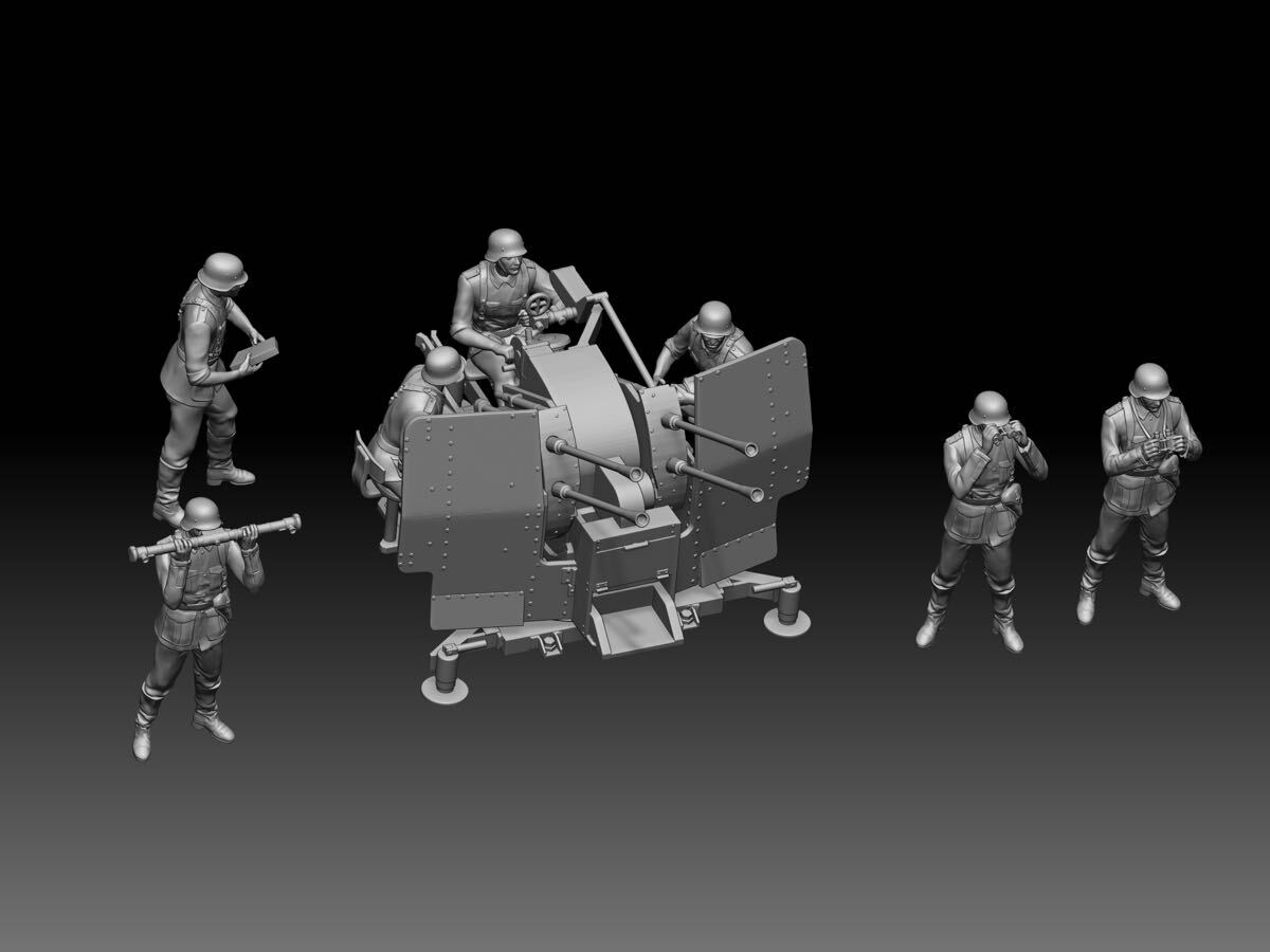 1/35 レジンキット 未塗装 WW2ドイツ軍  2cm 4連装対空機関砲 兵士フィギュア7体 250505
