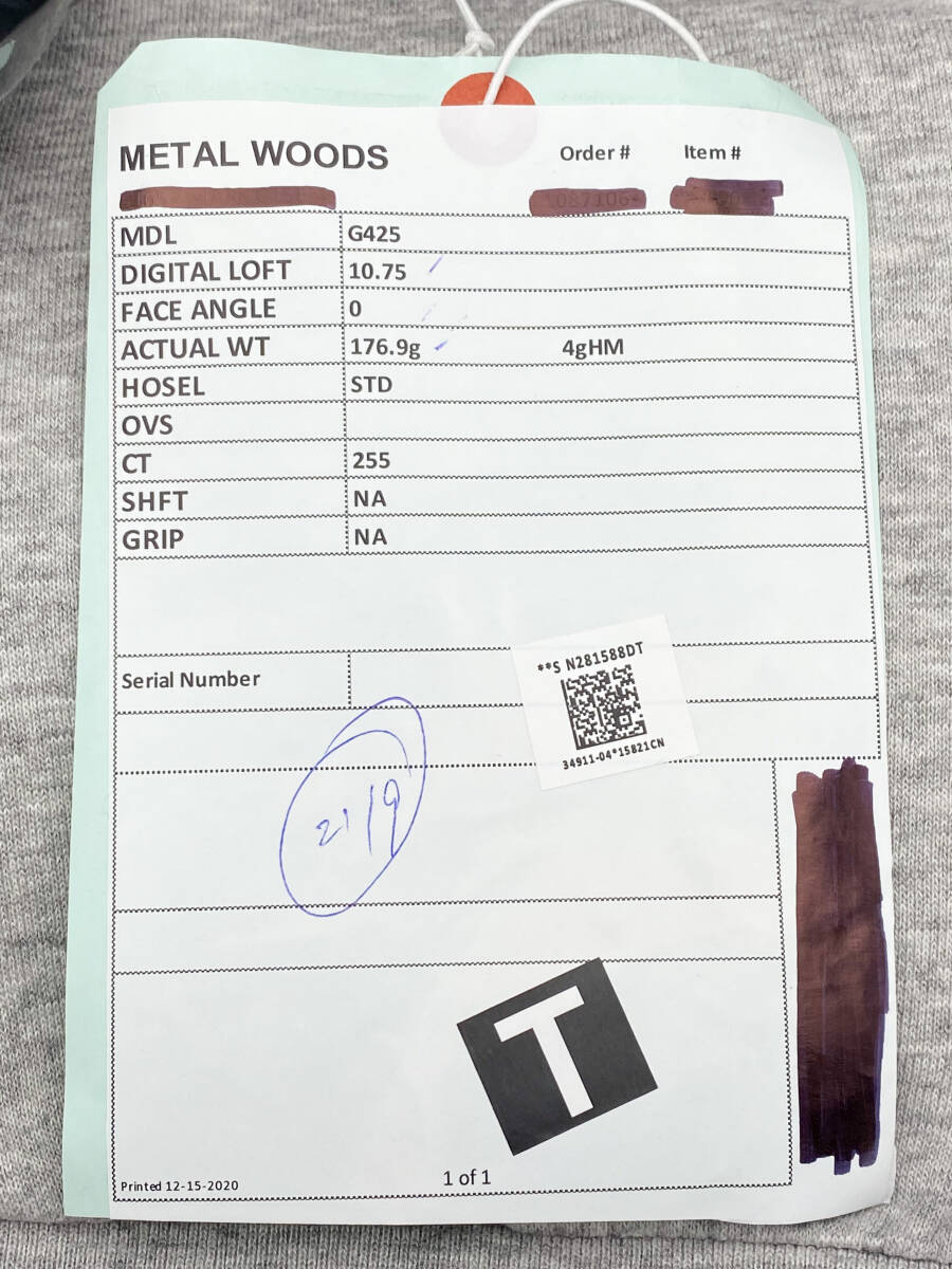 ☆CT255☆ ツアー支給品 WRX PROTO 2021 PING G425 MAX 10.5° (リアル10.75°) スペックシート付き TOUR ISSUE