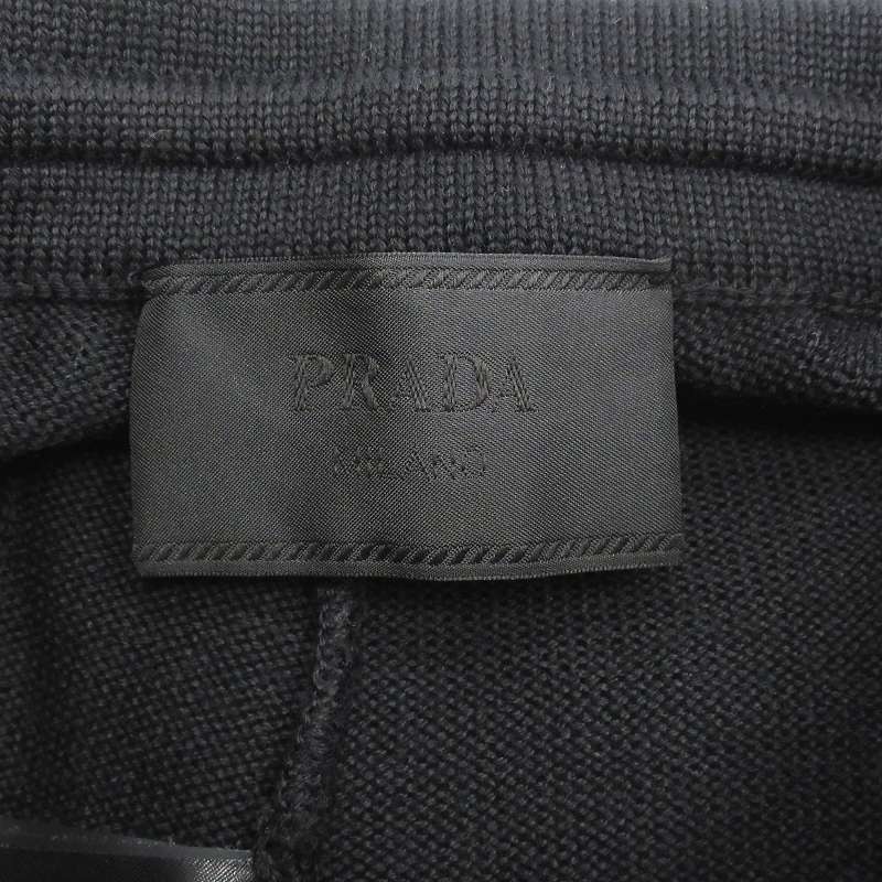 美品 20aw プラダ PRADA トライアングルロゴ Re-Nylon リ ナイロン ウール ニット パンツ 三角ロゴプレート スイッチング UMP67 44 黒