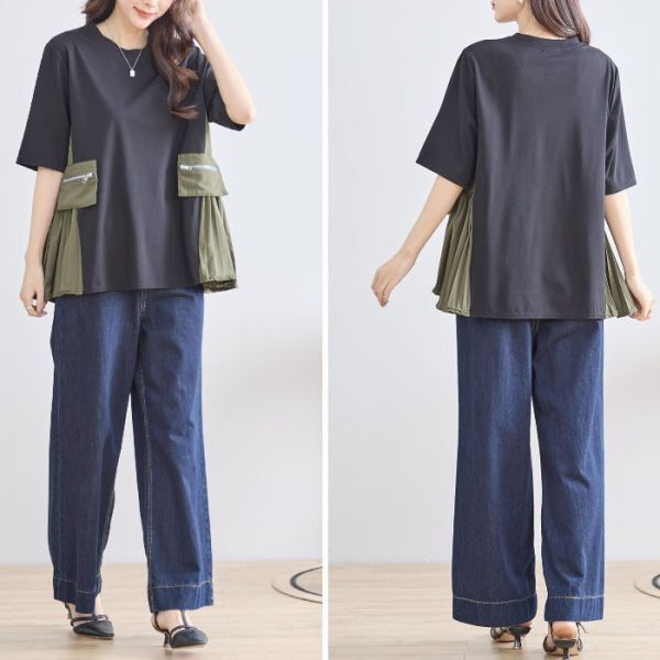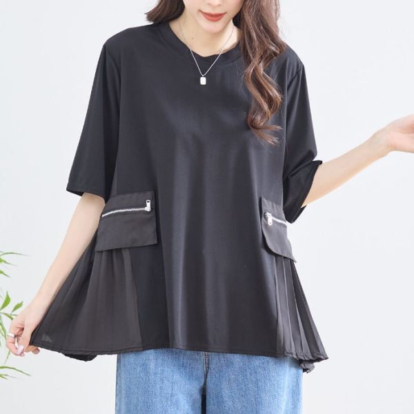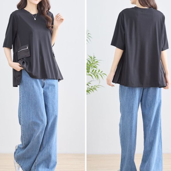13154829【2025新作】【M~L】プリーツ&ポケットデザインカットソー(N12-254) 13154829 フリーサイズ トップス レディースアパレル シャツ ブラウス Tシャツ ミス ミセス10代20代30代40代50代60代フレアー体系カバー春夏秋冬オールシーズン