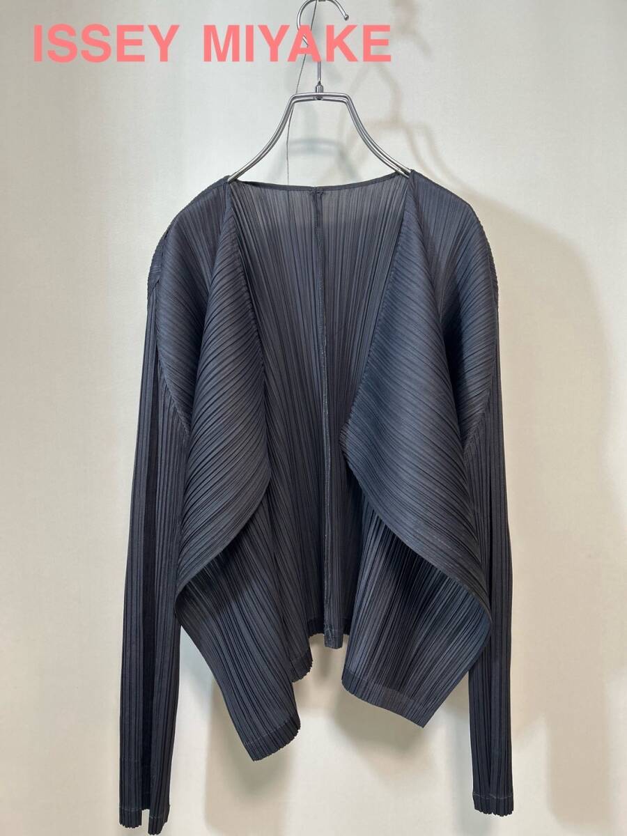 MM0067★8 高級 美品 ISSEY MIYAKE イッセイミヤケ プリーツプリーズ 長袖 シャツ ブラウス カーディガン ストレッチ生地 JPタグ グレー