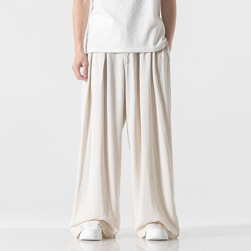 新入荷大人気ワイドパンツメンズリネンパンツ ボトムス ゆったり 太め バギーパンツ 涼しい 清涼 ゆるパン 袴パンツ ロングパンツグレー2XL