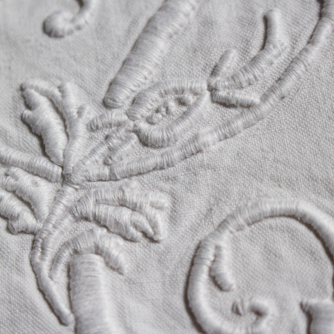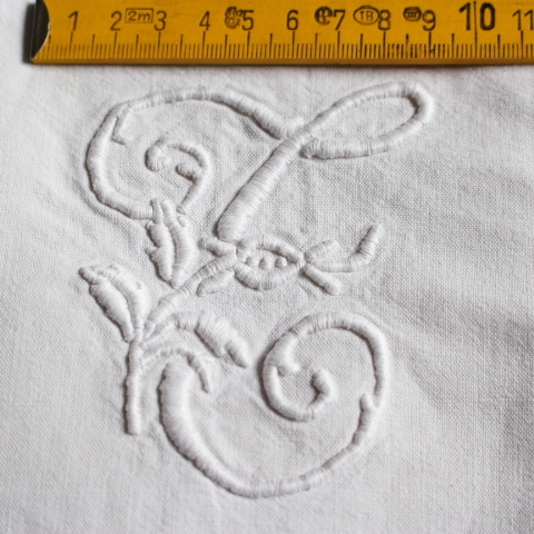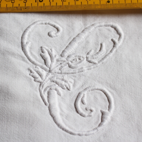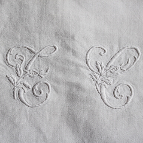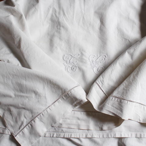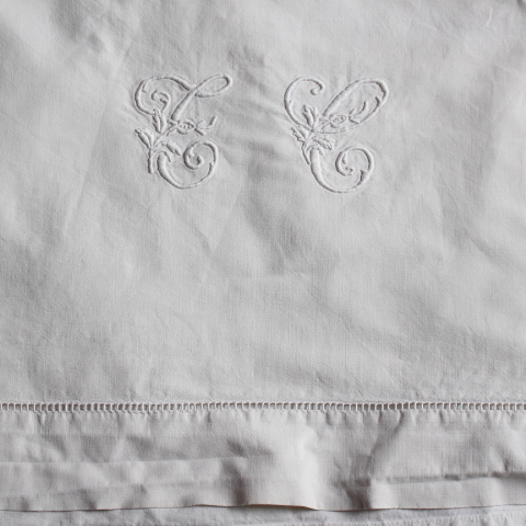 フランスアンティーク★イニシャル入りベットリネン☆TC