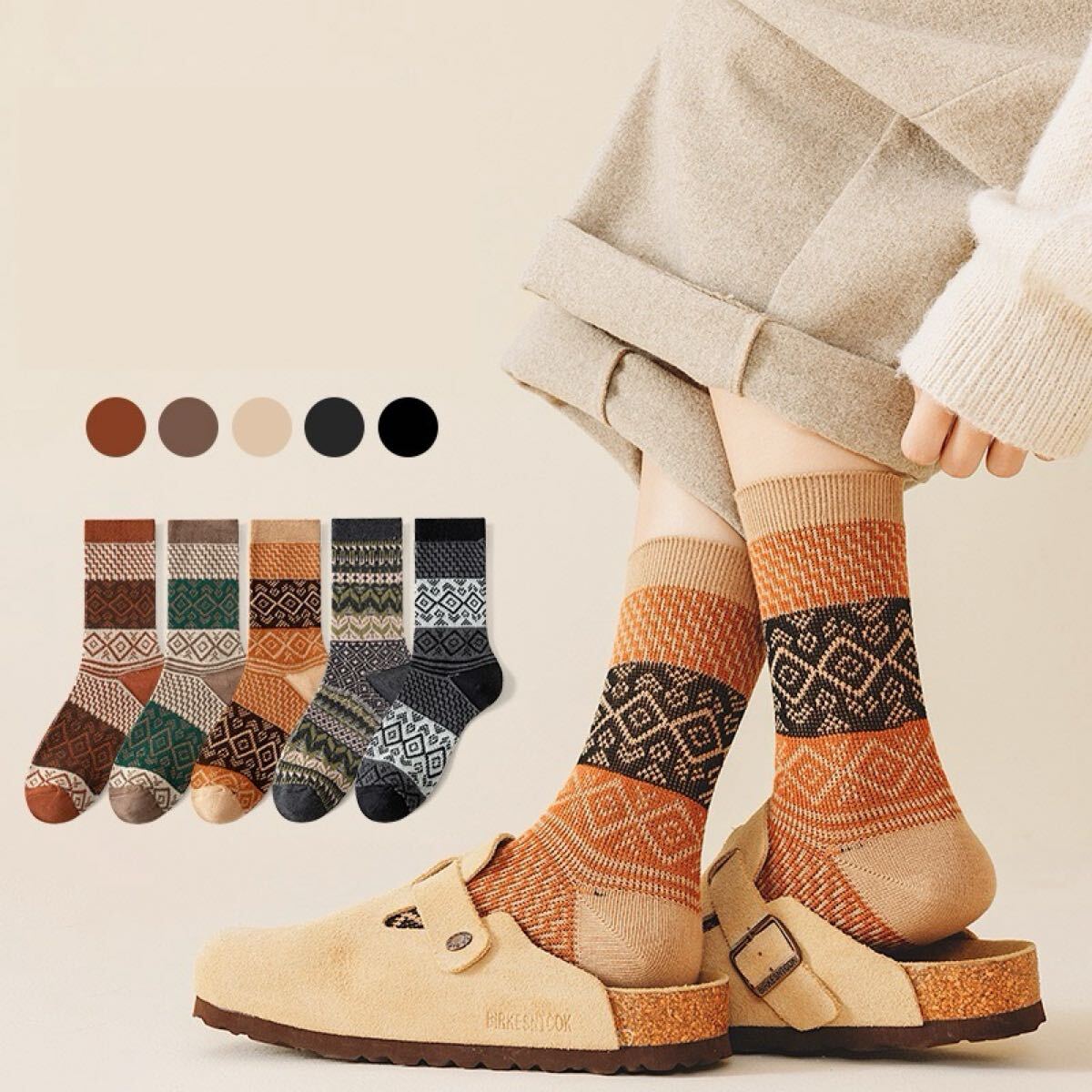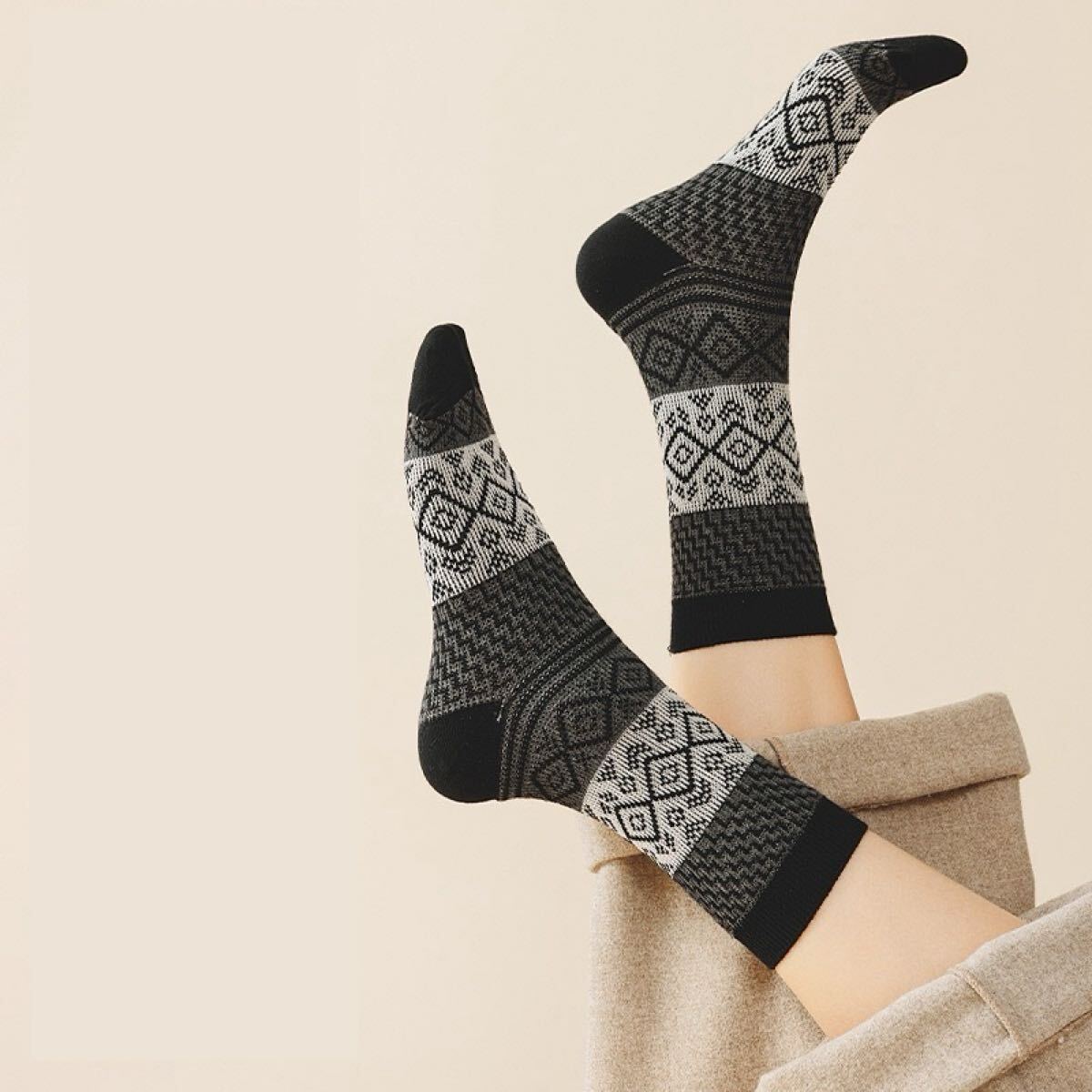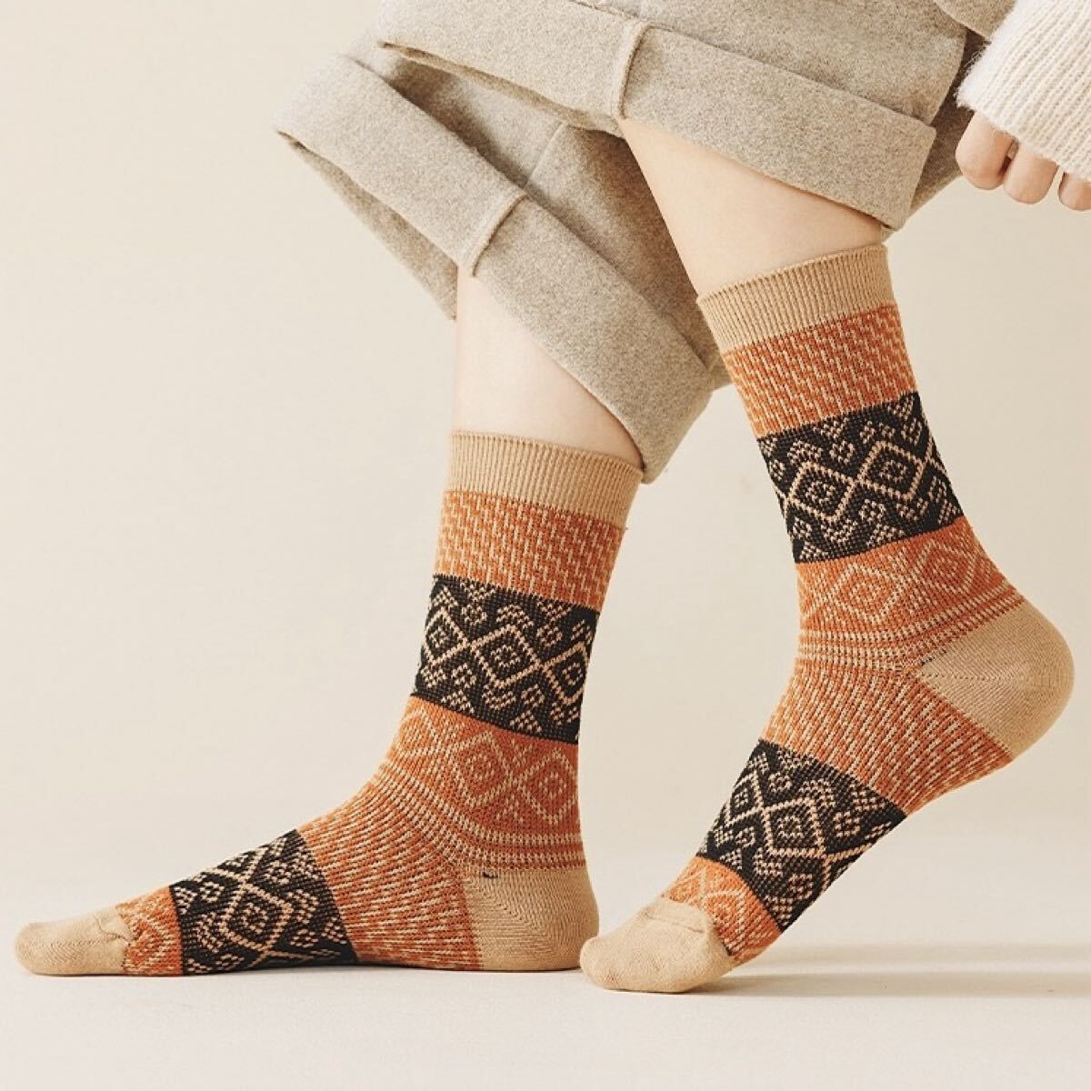レディース靴下 ls2431 5足組 秋冬 幾何学模様 カジュアル ミドル丈