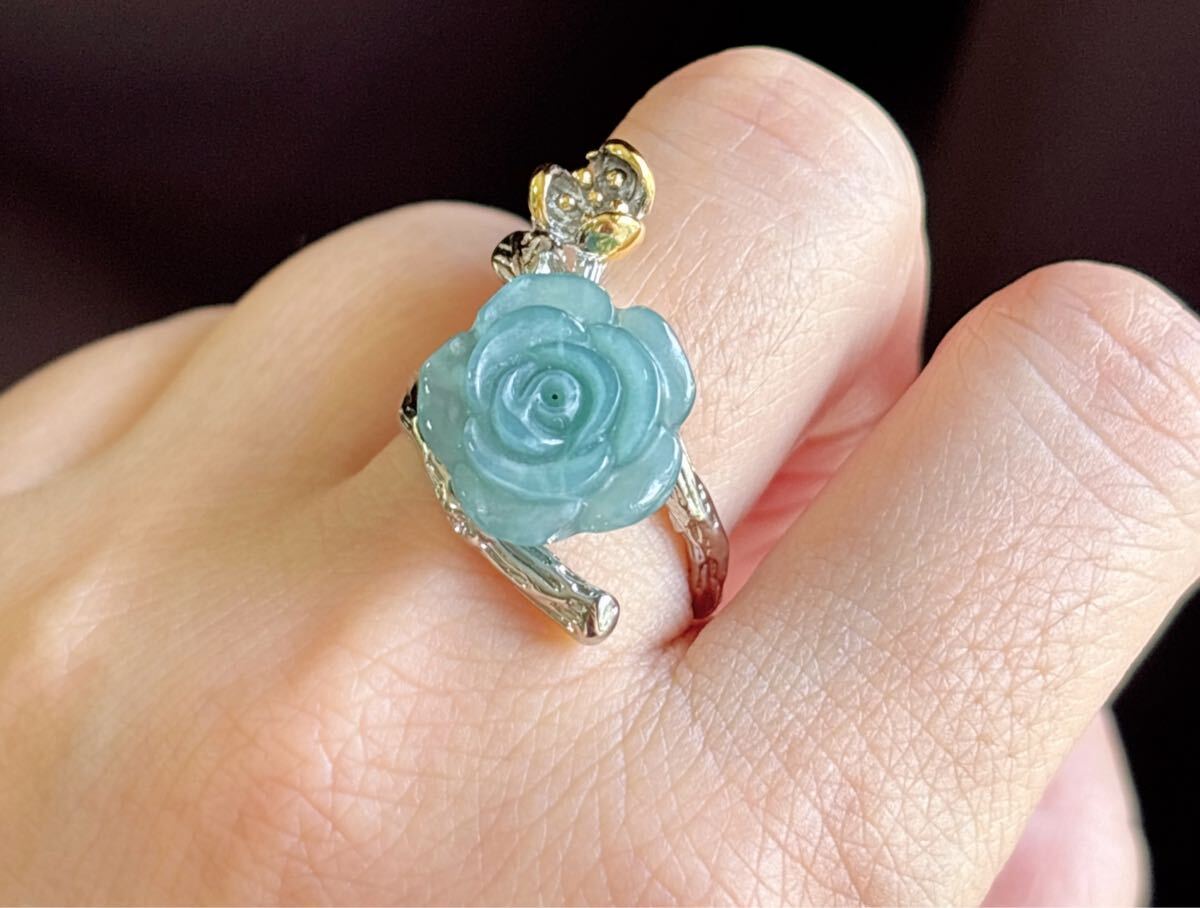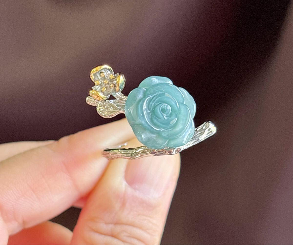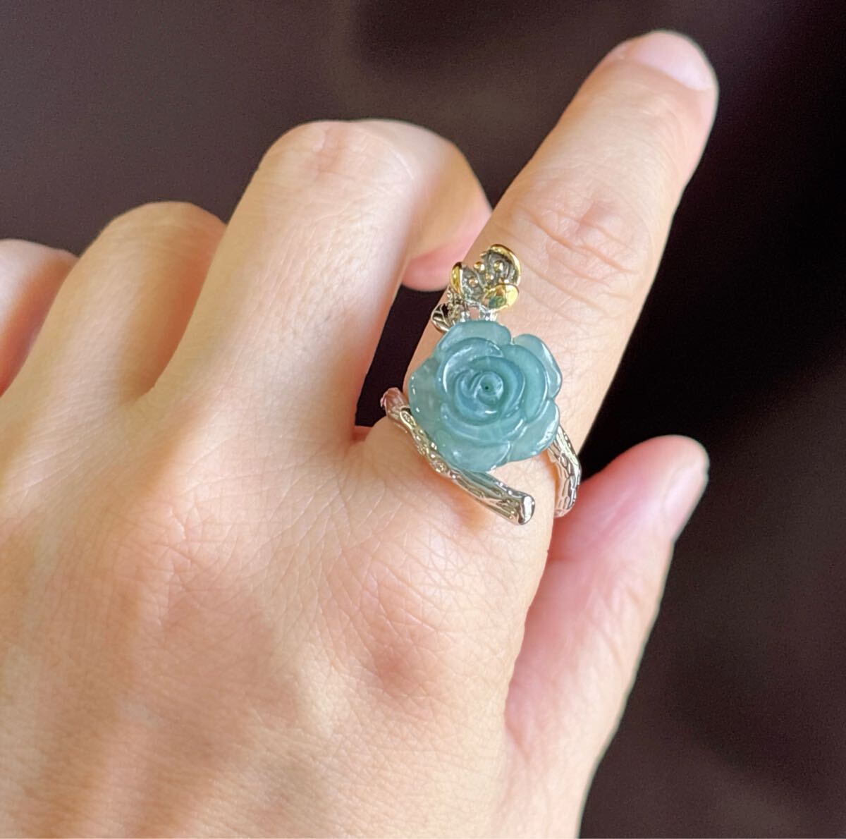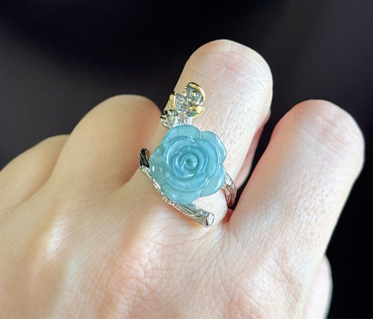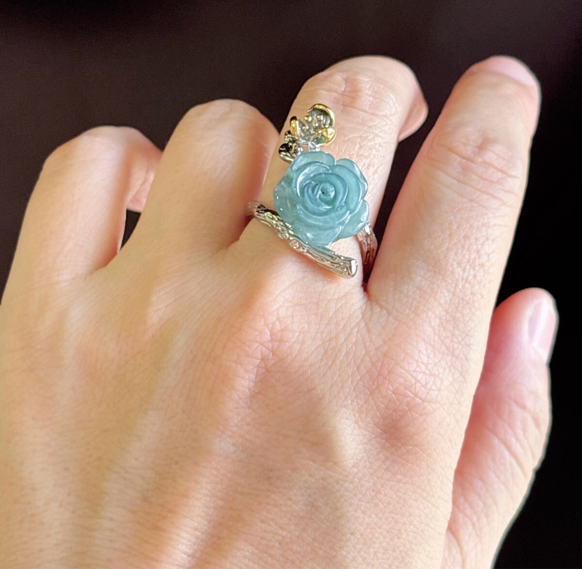 天然石藍水本翡翠(A)花リングのサイズ約: