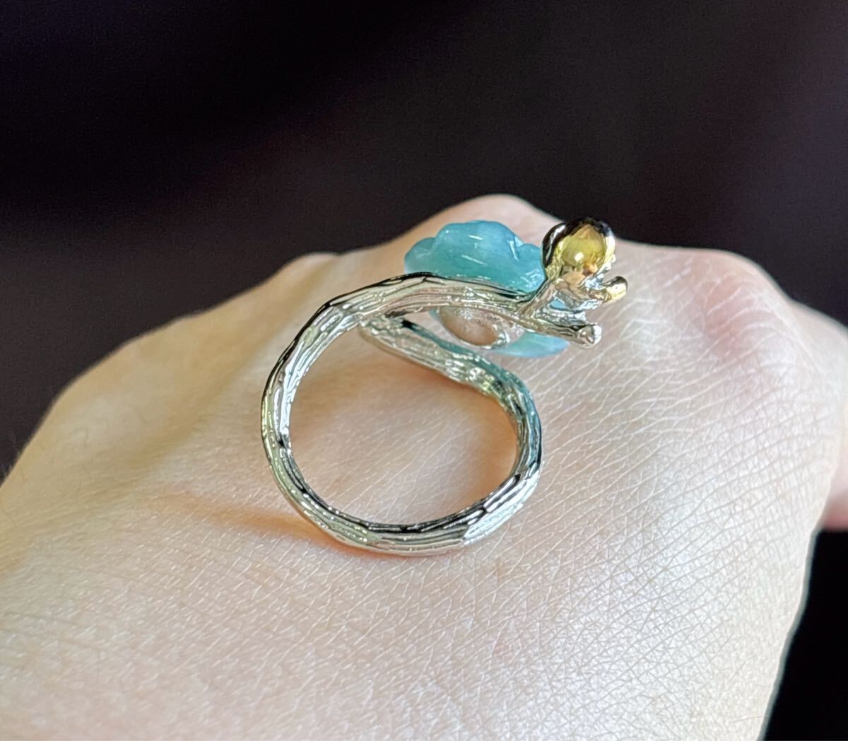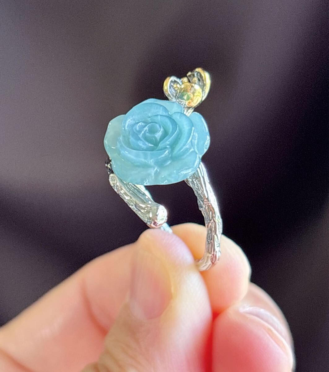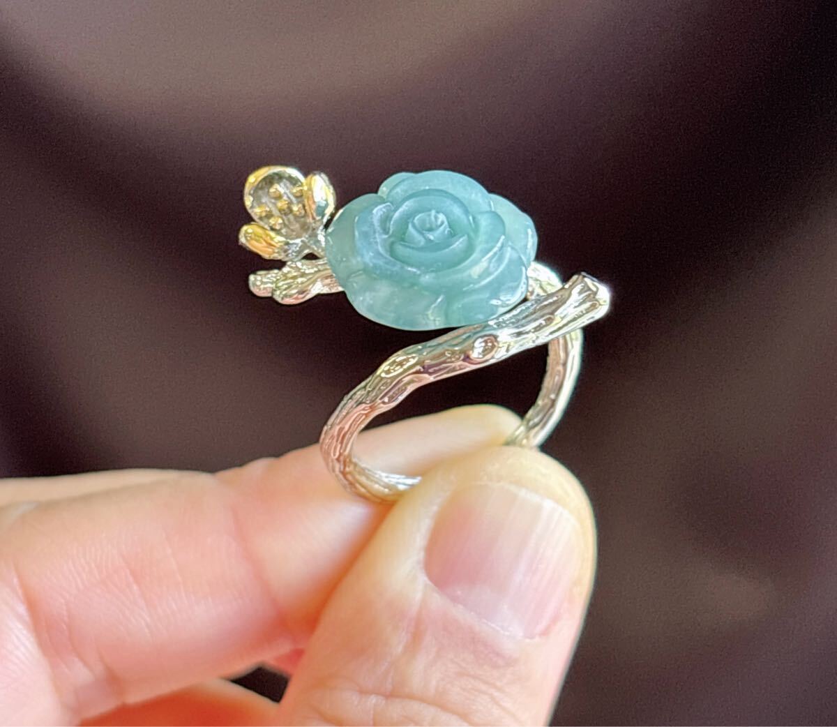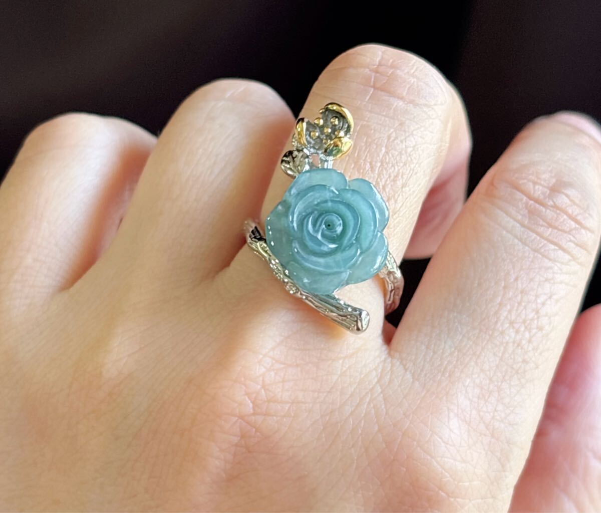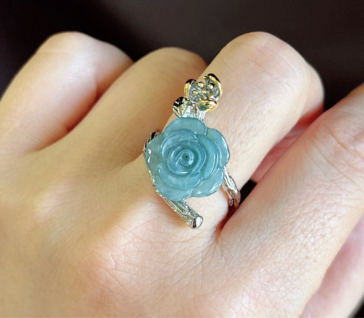 天然石藍水本翡翠(A)花リングのサイズ約: