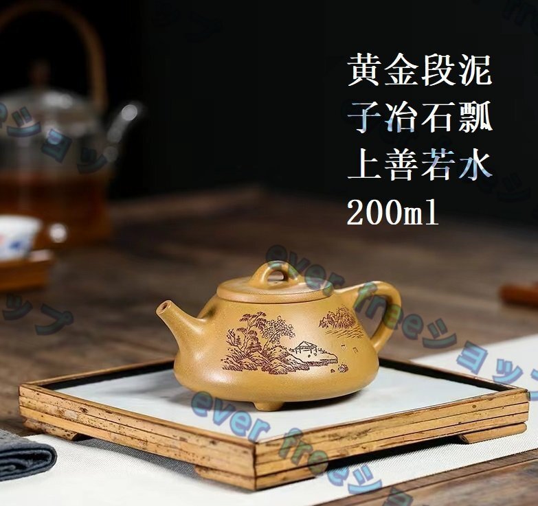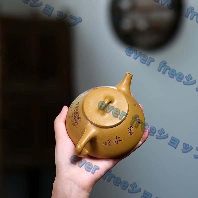 新入荷★ 茶道具 紫砂壺 煎茶道具 古玩 刻印 黄金段泥 上善若水 陳菊華 茶器 200ml ティーポット 中国茶器 茶壺 濃紫茶 急須 泡瓶