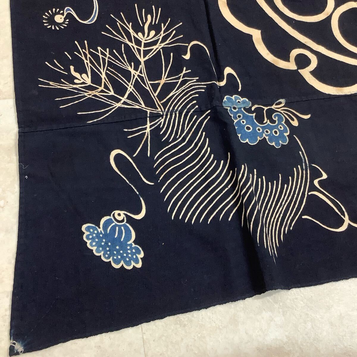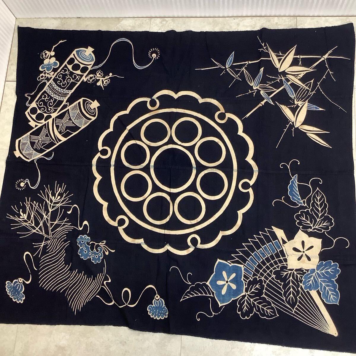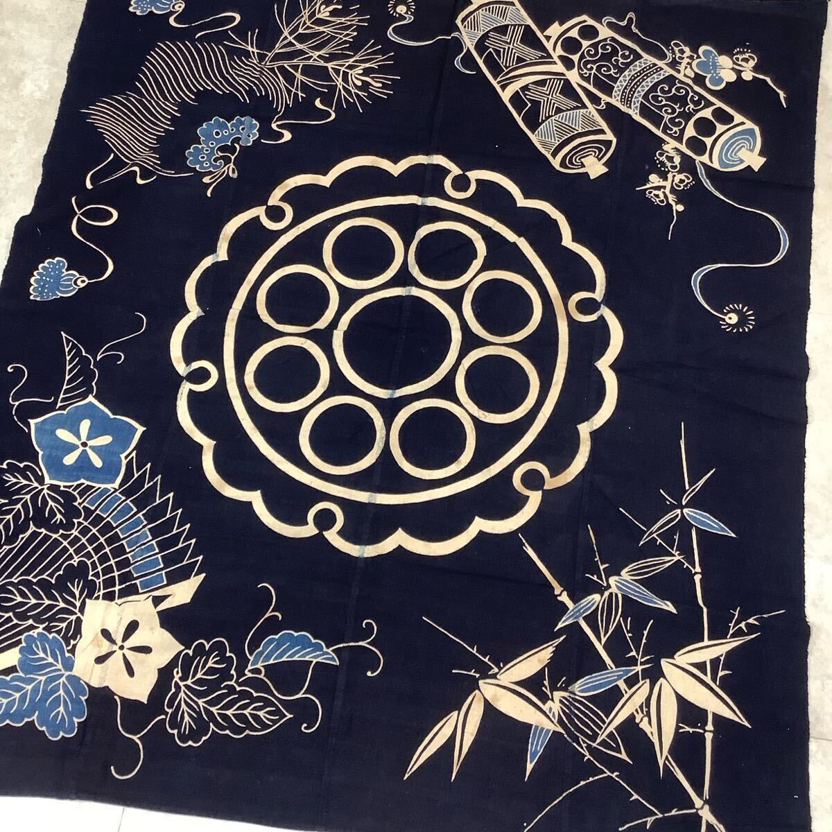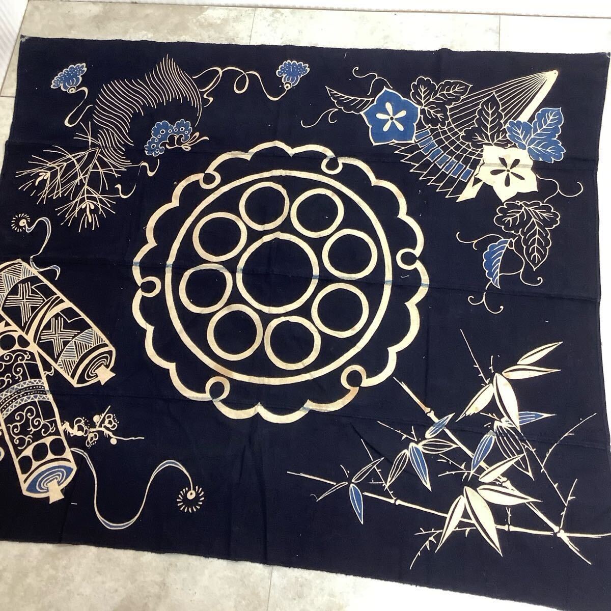 古布前掛け専門屋◆筒描き◆手織り木綿◆本藍染◆4幅◆145cm×132cm◆風呂敷◆藍無地風呂敷刺子絣縞型染布団側裂織筒描き襤褸野良着半纏麻書生絣蚊絣雪ん子絣格子BOROはぎれリメイクでございます。