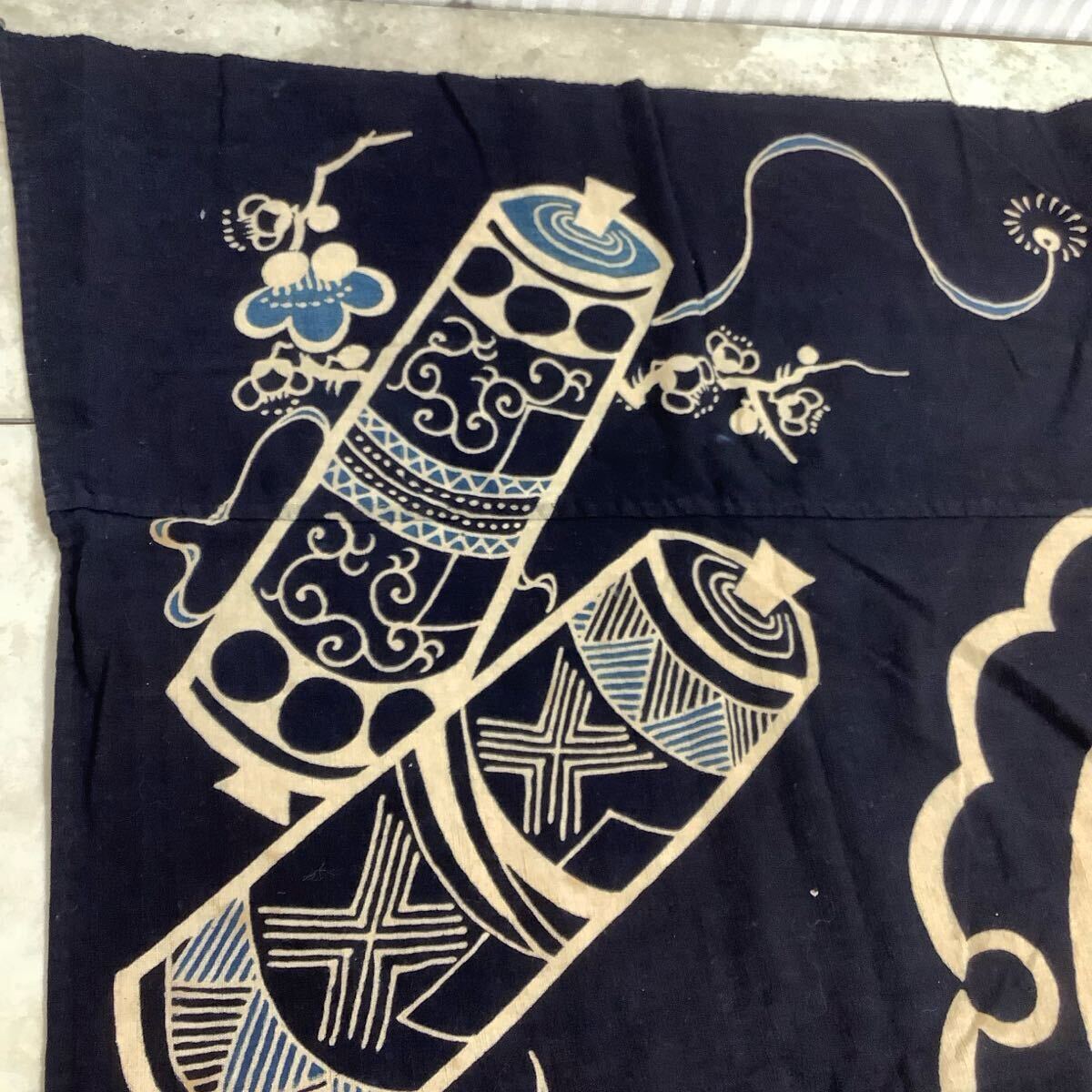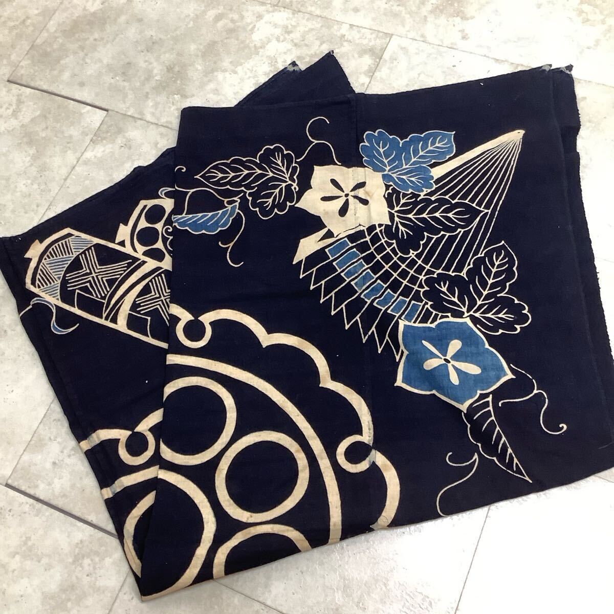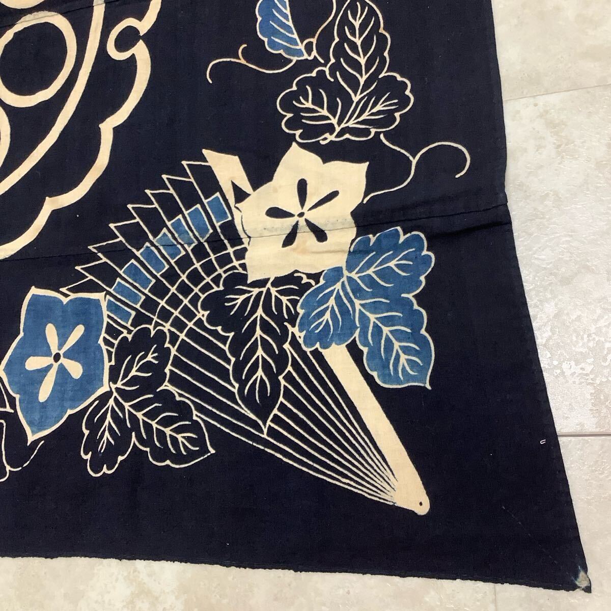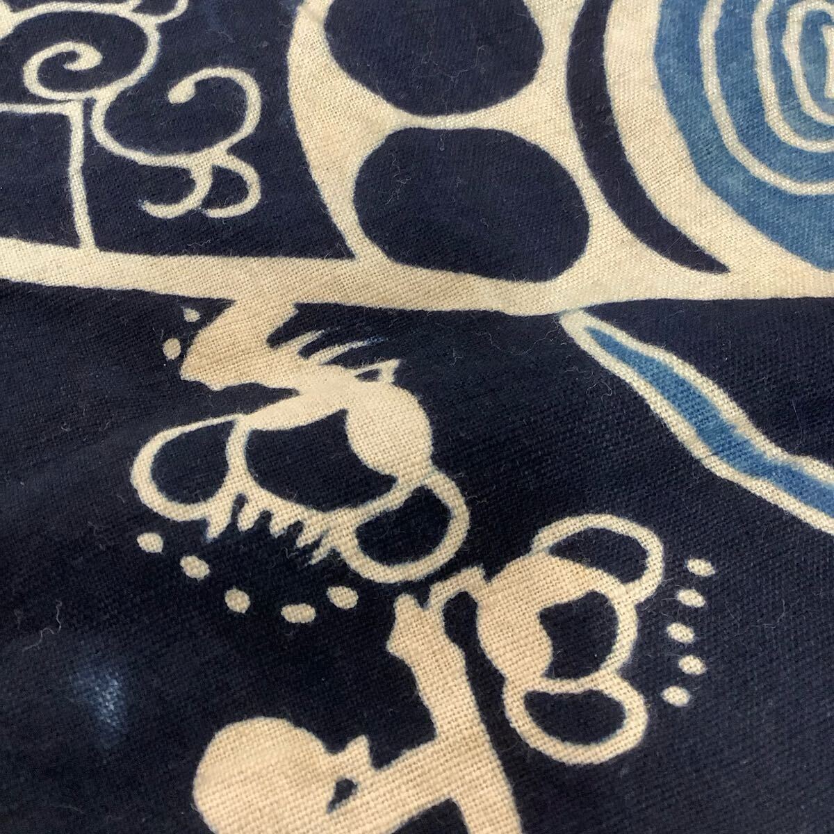 古布前掛け専門屋◆筒描き◆手織り木綿◆本藍染◆4幅◆145cm×132cm◆風呂敷◆藍無地風呂敷刺子絣縞型染布団側裂織筒描き襤褸野良着半纏麻書生絣蚊絣雪ん子絣格子BOROはぎれリメイクでございます。