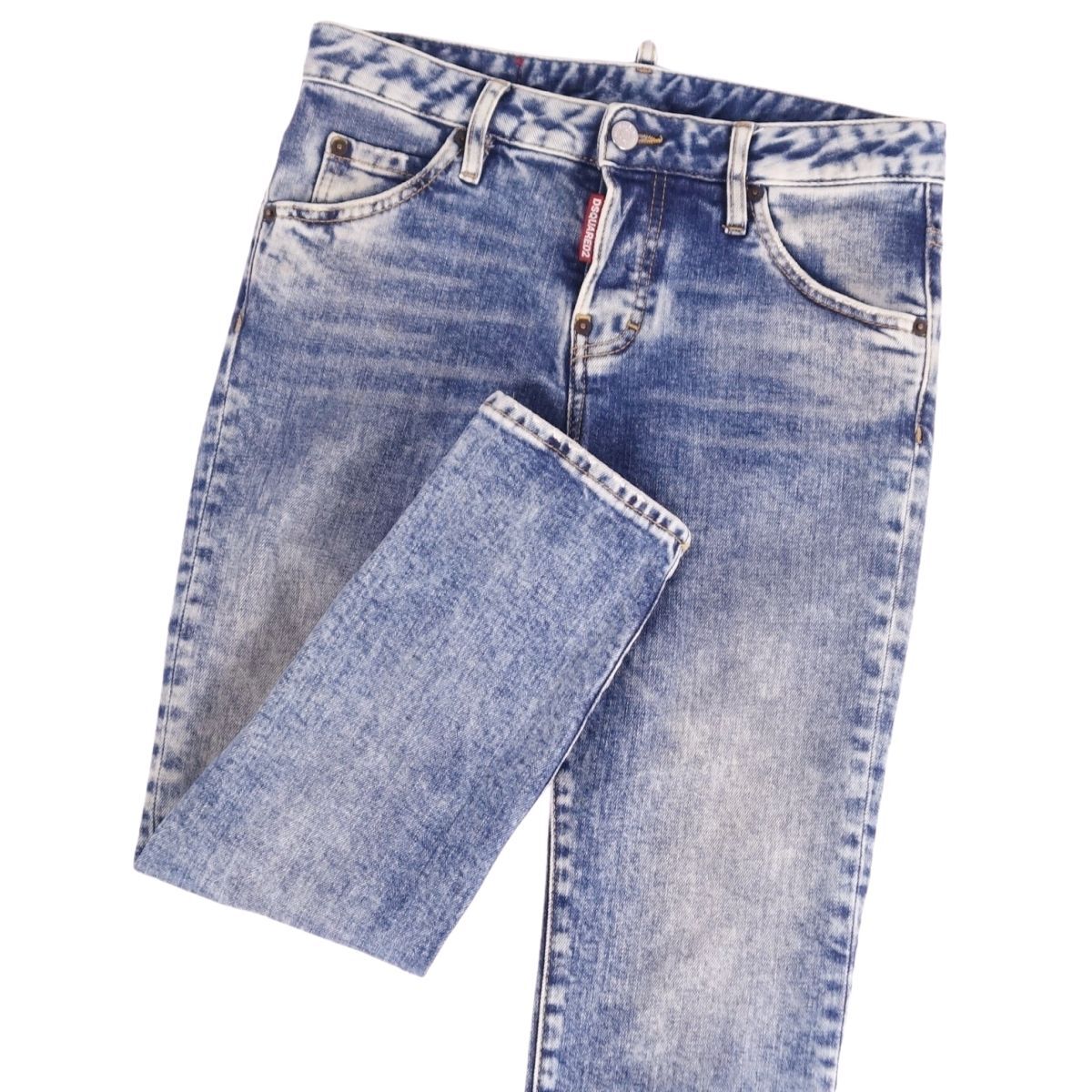 | 美品 ディースクエアード DSQUARED2 デニムパンツ ウォッシュ加工 コットン ボトムス レディース 34 インディゴブルー |