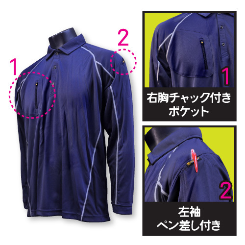 CO-COS(コーコス信岡)G-1418遮熱長袖ポロシャツ【ネイビー】3Lサイズ ネコポス(ポスト投函)発送