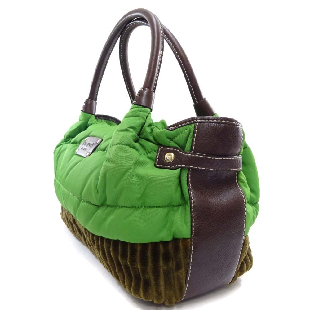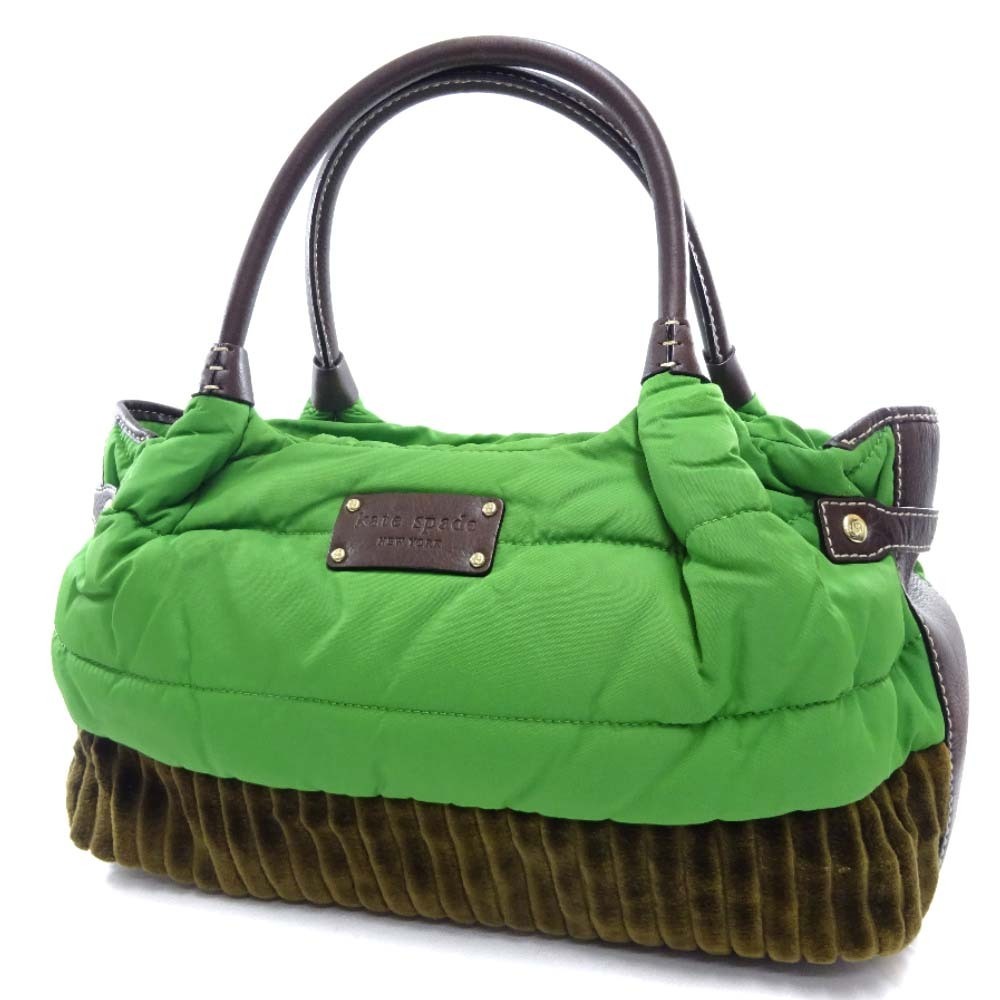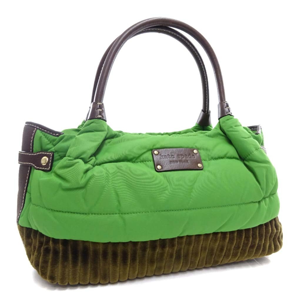 ケイトスペード キルティングデザイン ハンドバッグ レディース ナイロン レザー グリーン ブラウン PXRU0582 中古 Kate Spade